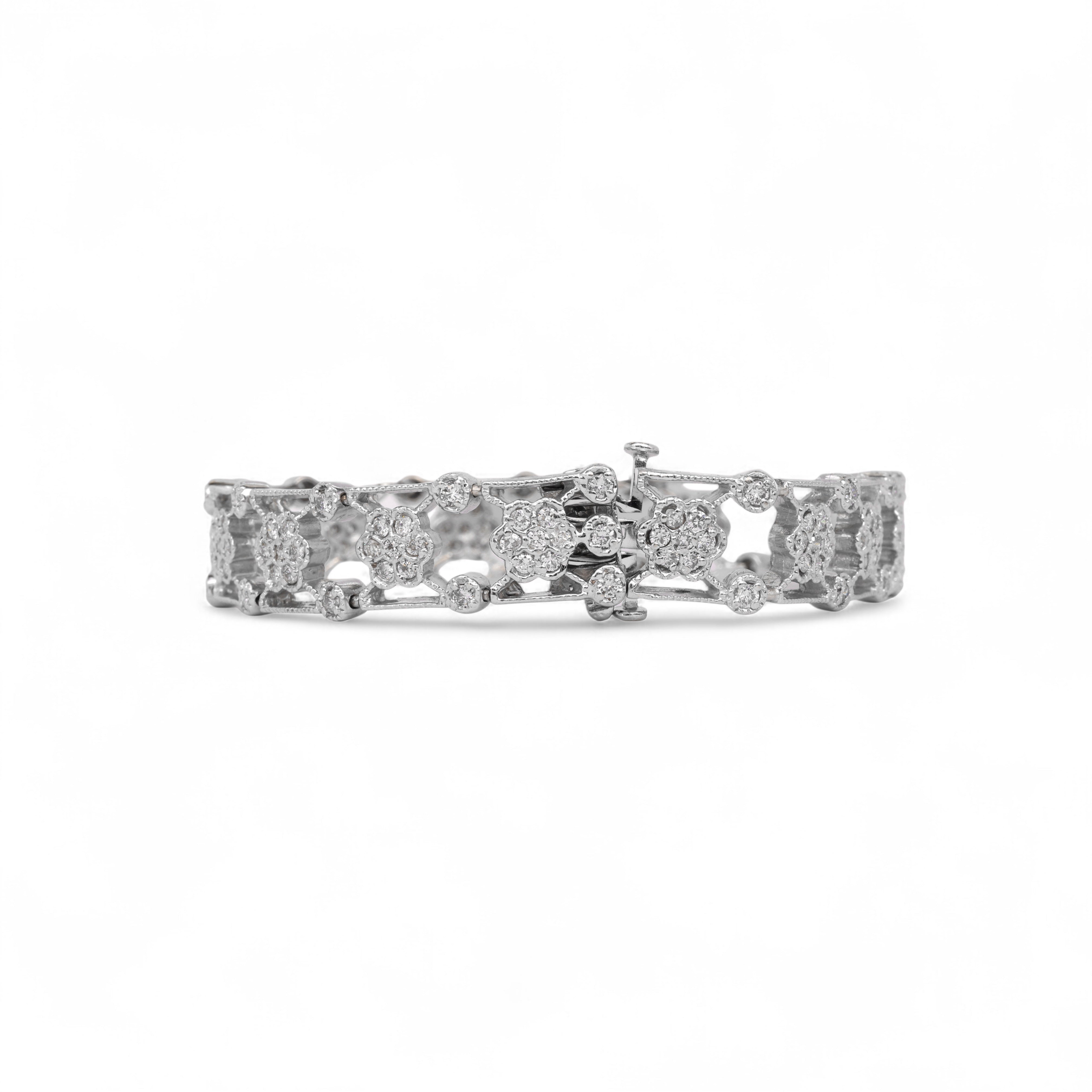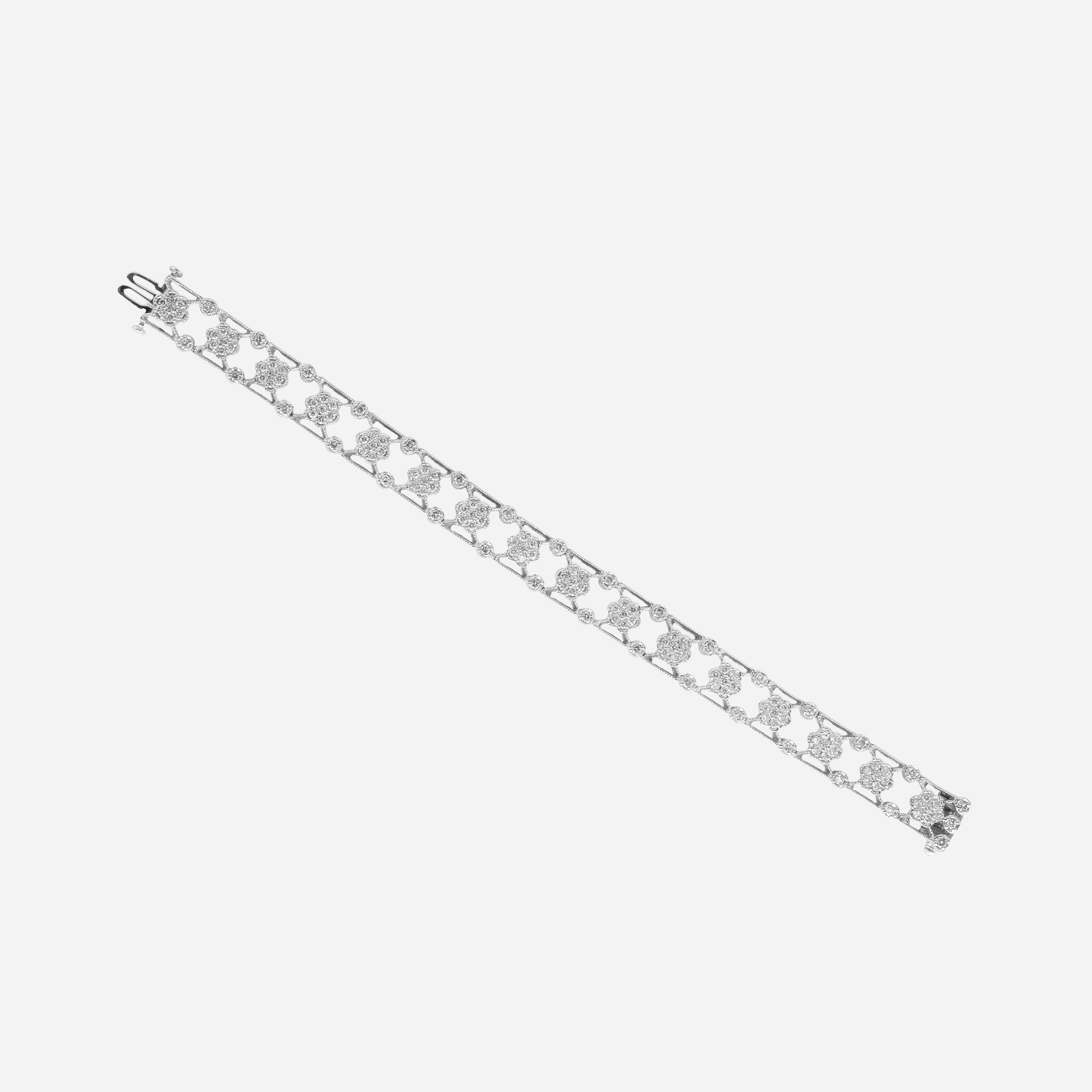 14K White Gold 6.00 Carat Floral Prong Set Natural Diamond Bracelet