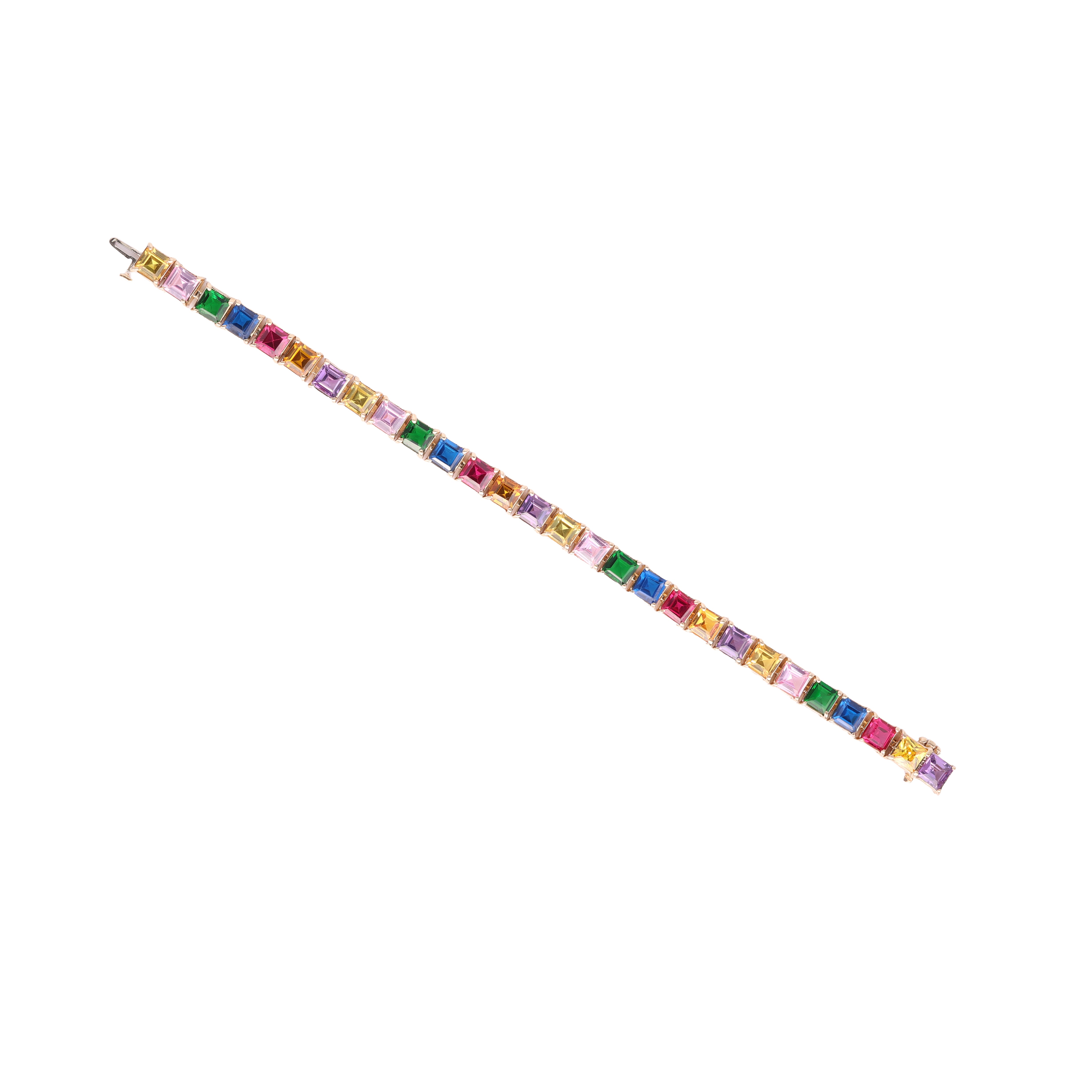 14K Yellow Gold Square Rainbow Tennis Diamond Bracelet