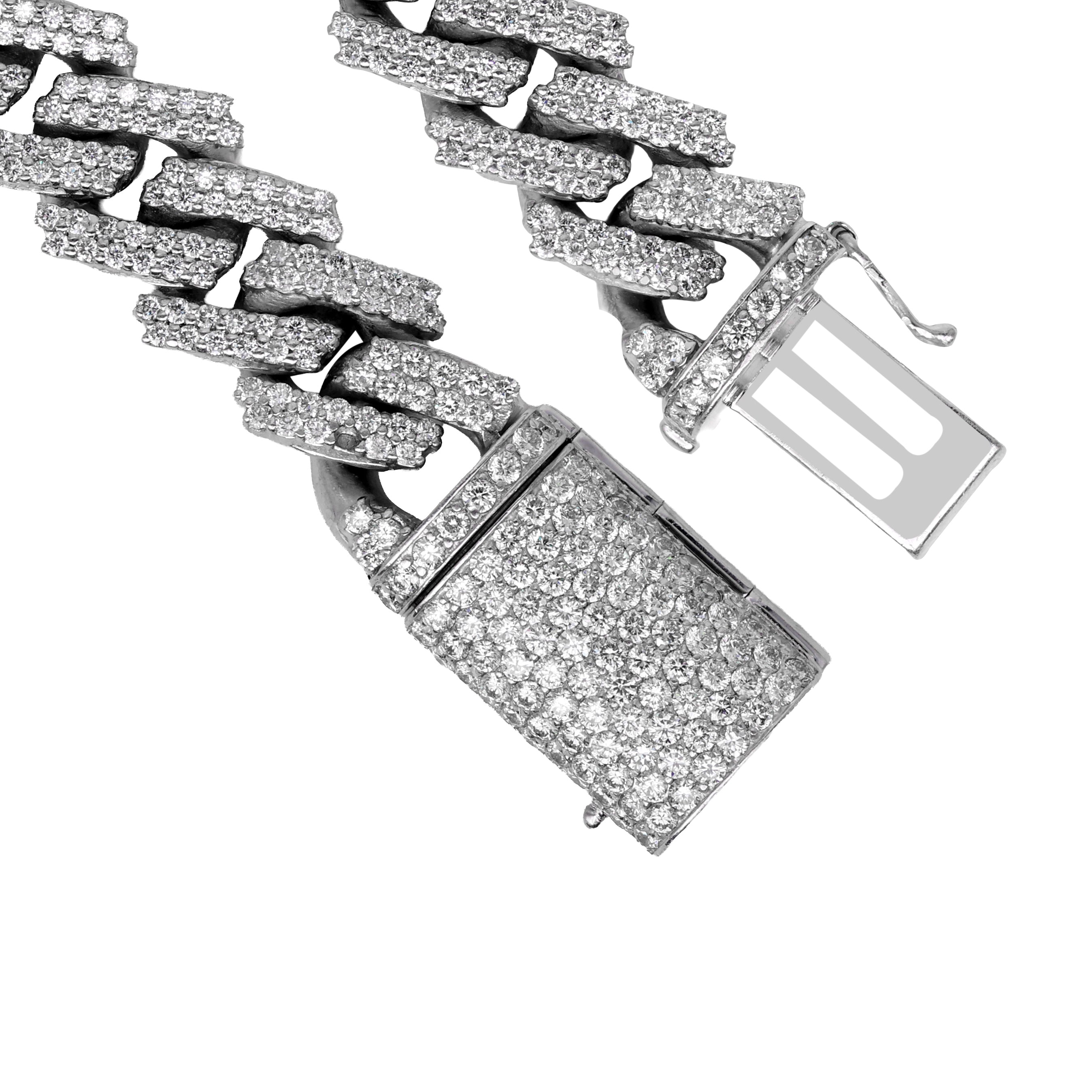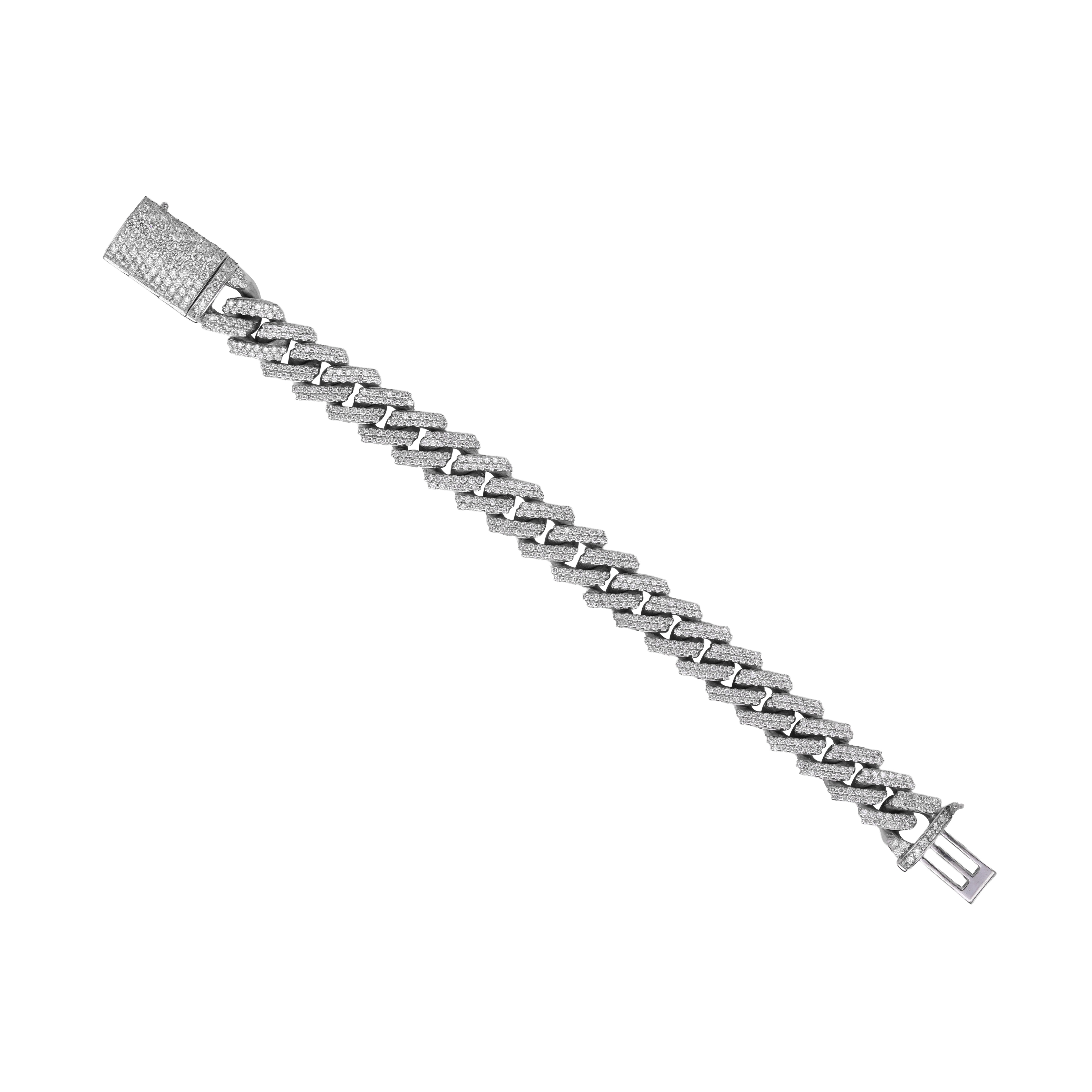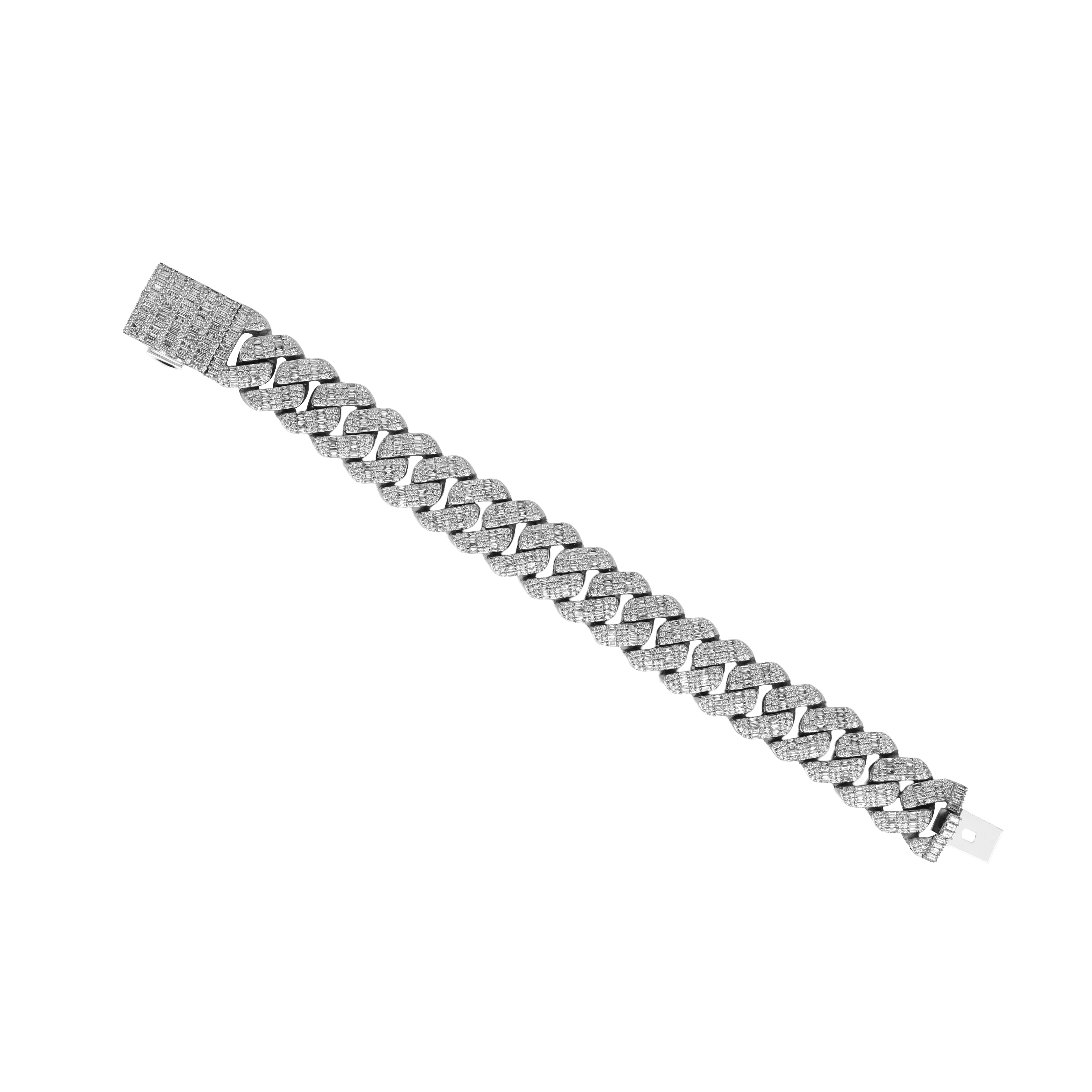 14K White Gold Miami Cuban Link Diamond Bracelet 104 Gr