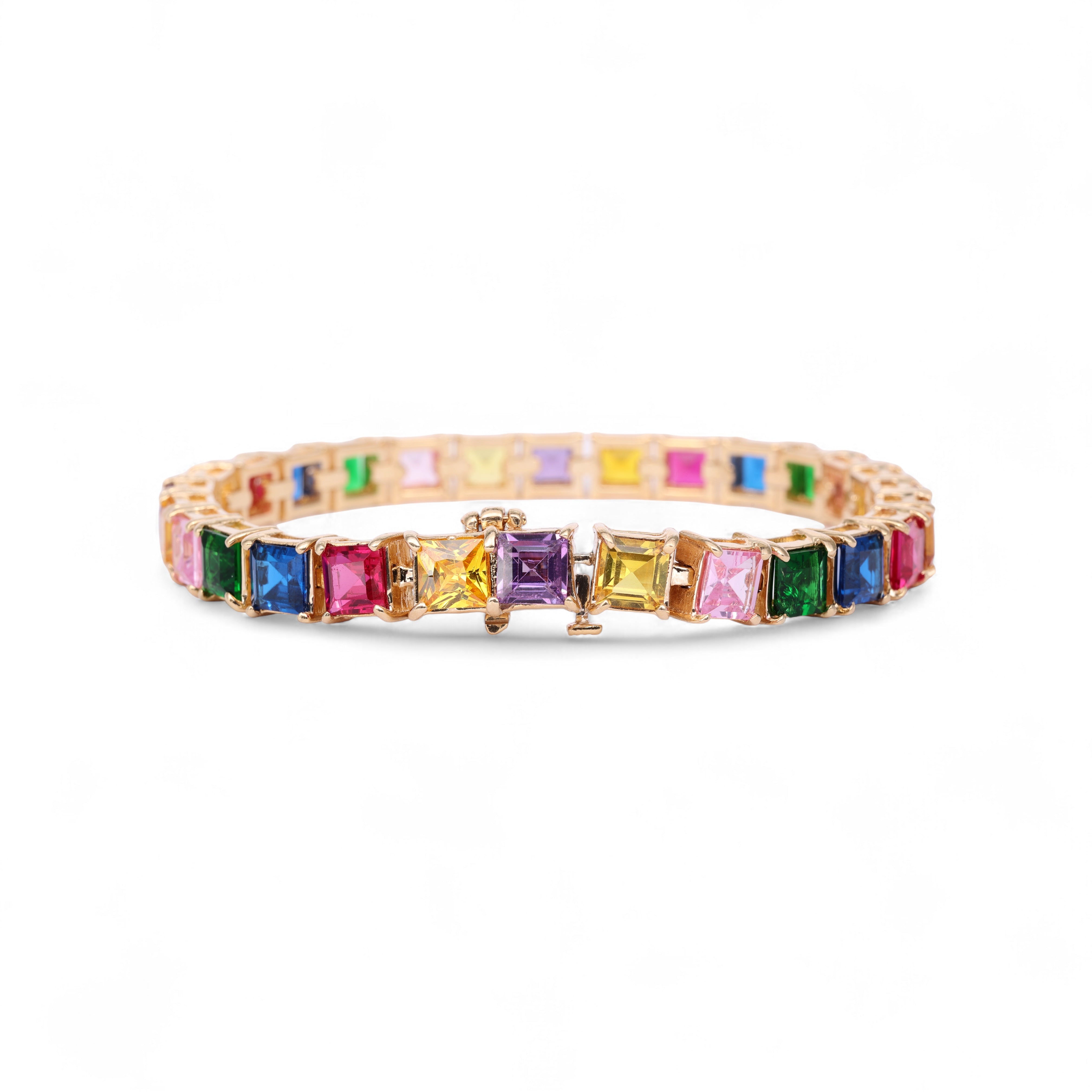 14K Yellow Gold Square Rainbow Tennis Diamond Bracelet