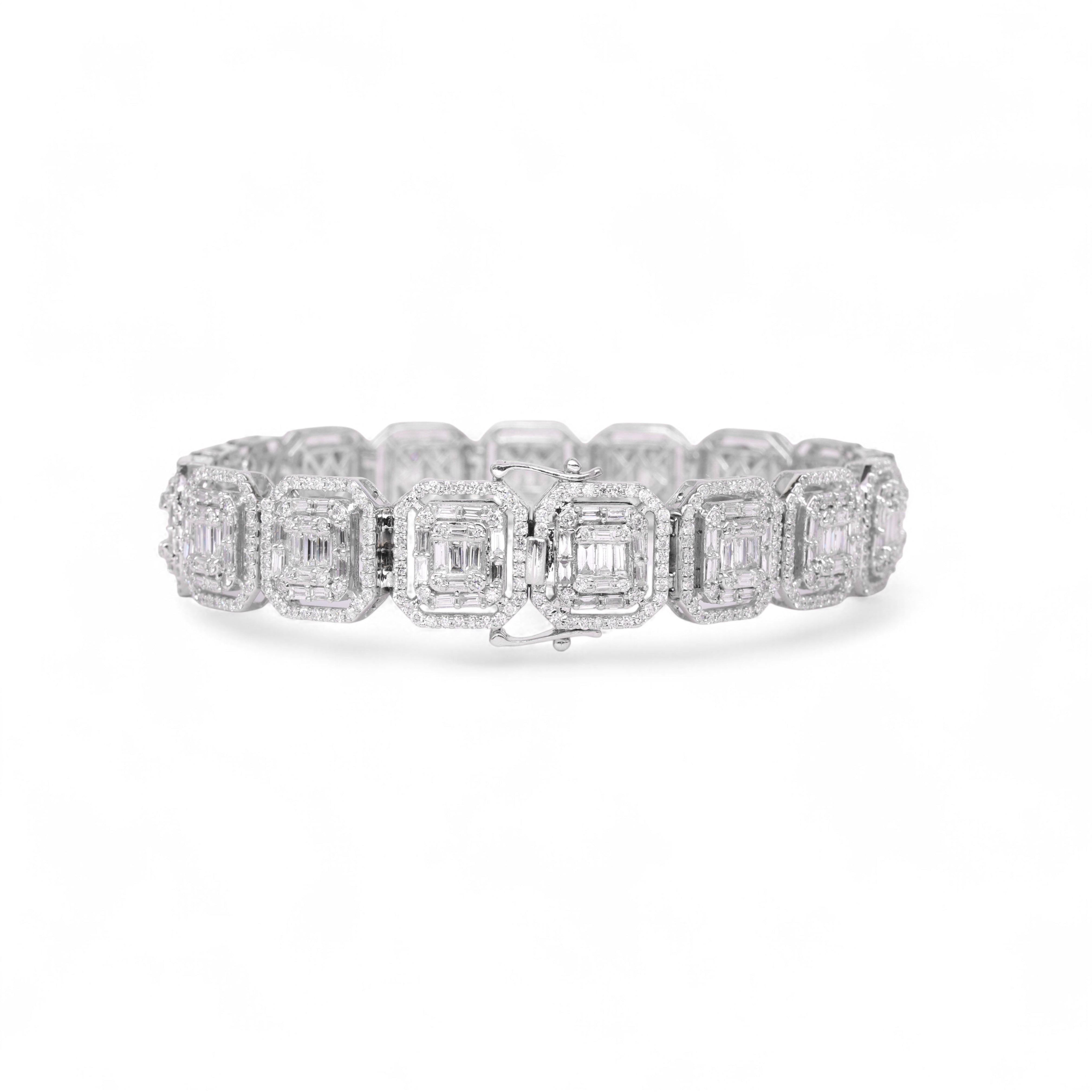 14K White Gold 9.42 Carat Square Link Baguette Diamond Bracelet