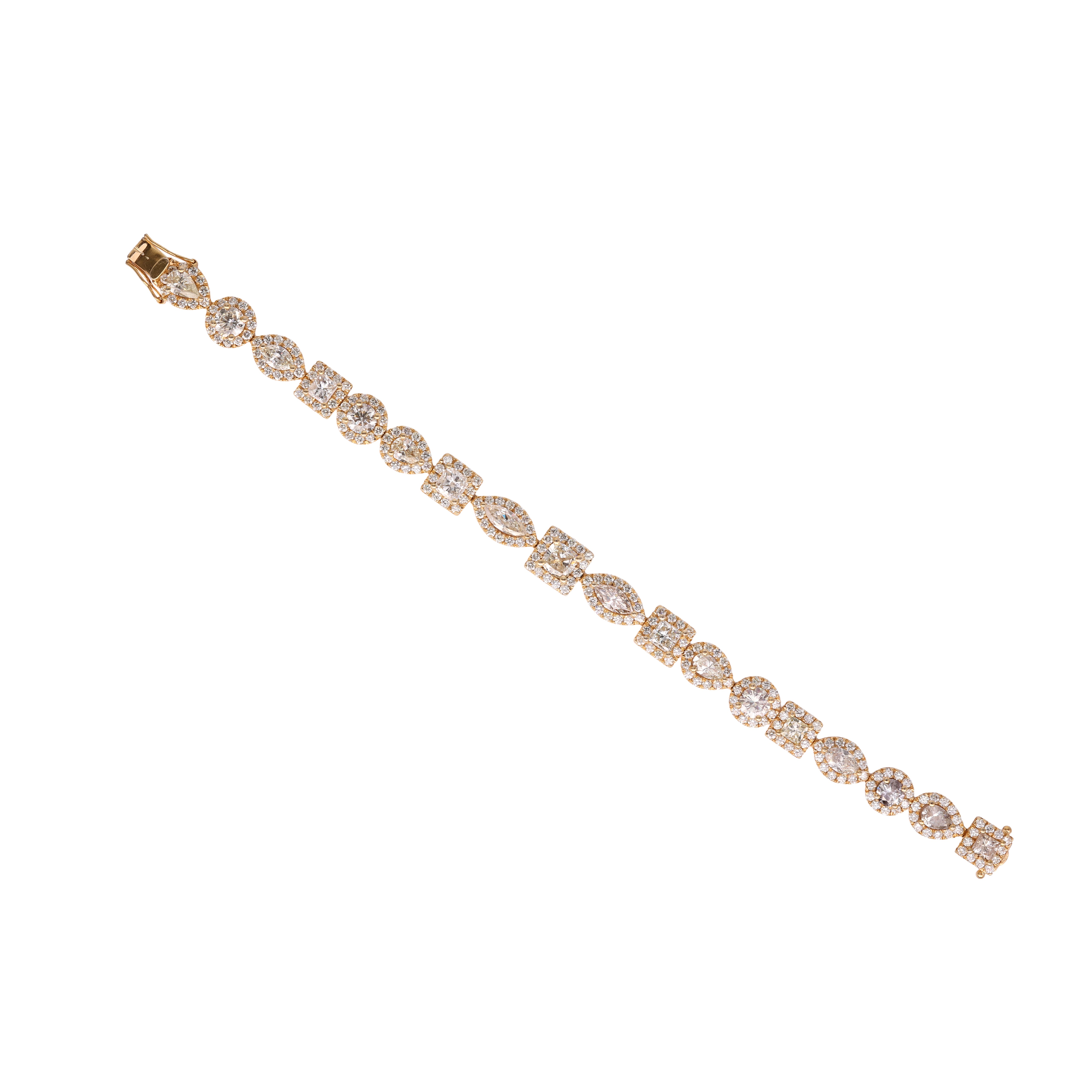 14K Rose Gold 22.00 Carat Multi Shape Fancy Diamond Bracelet