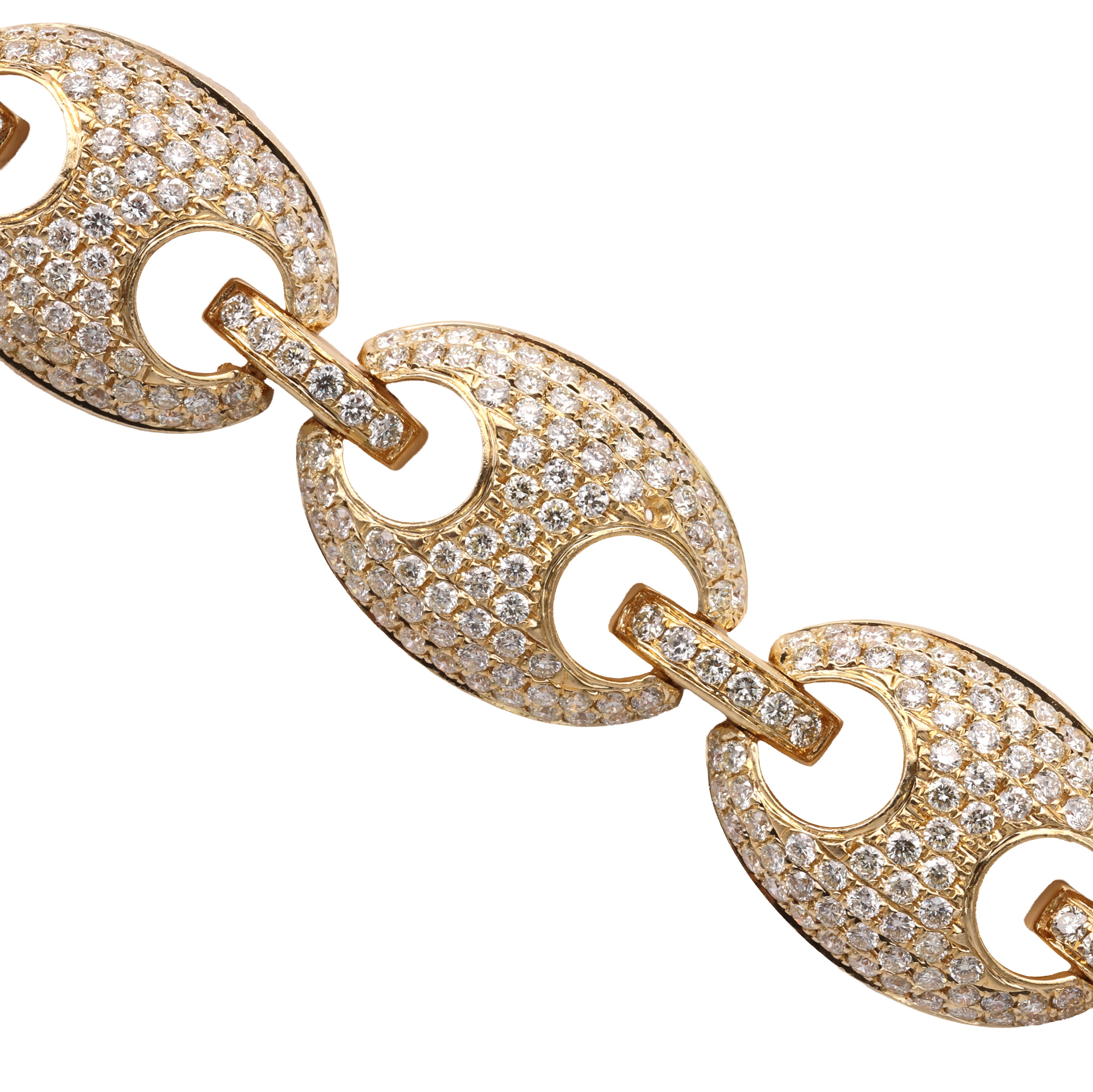 14K Yellow Gold 7.00 Carat Natural Pave Diamond Puffed Mariner Link Bracelet