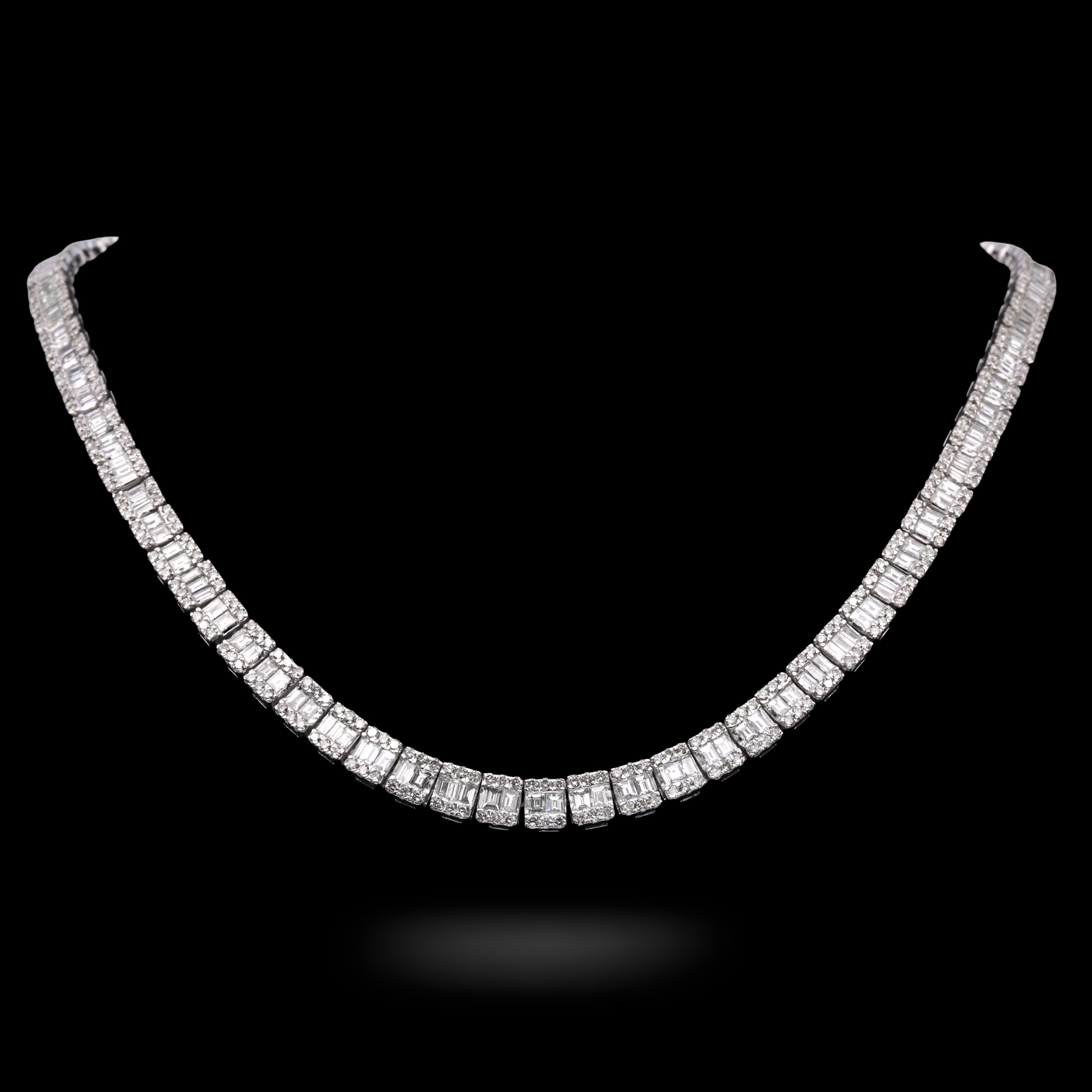 14K White Gold Prong Set 13.00 Carat Lab Diamond Tennis Necklace