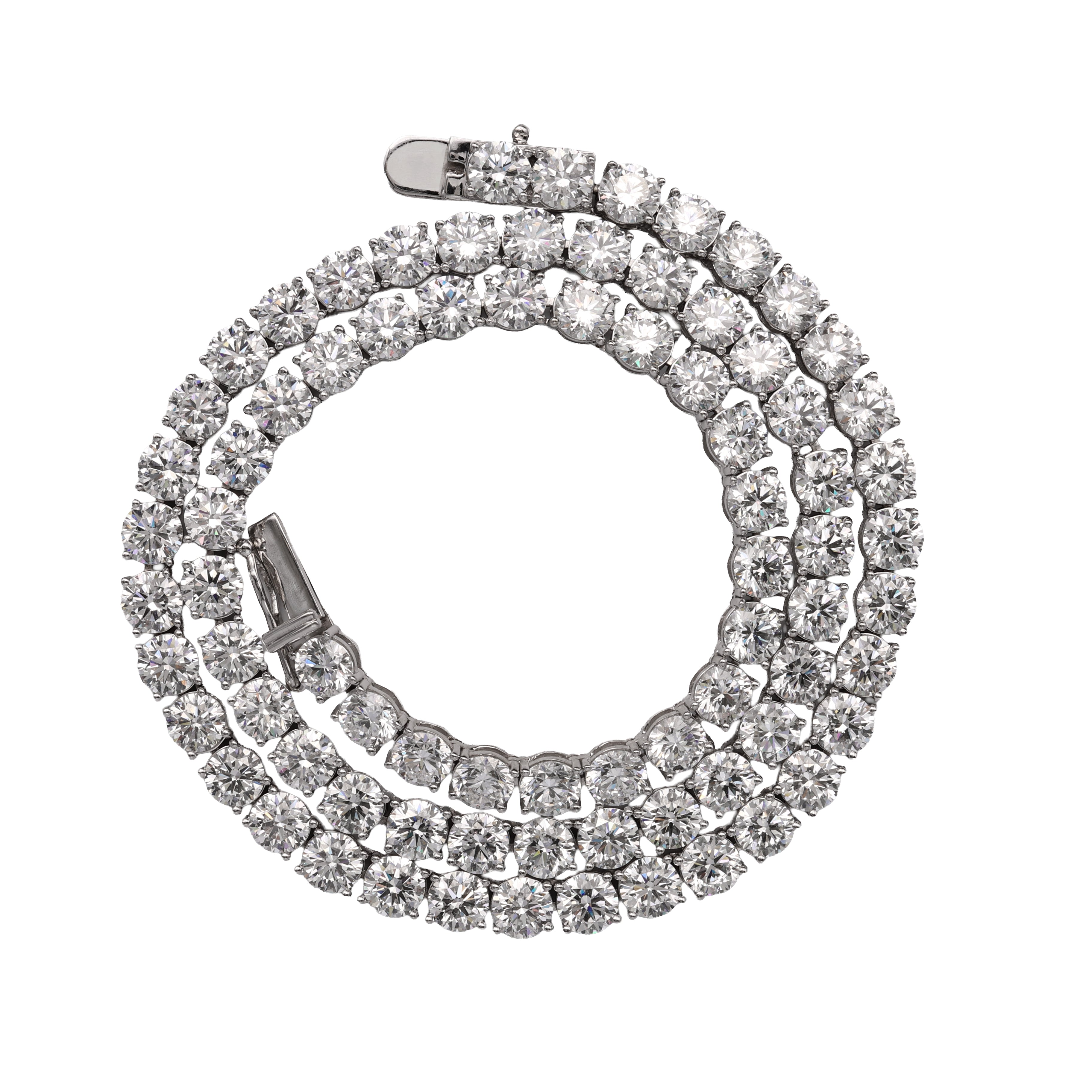 14K White Gold Prong Set 52.75 Carat Lab Diamond Tennis Necklace