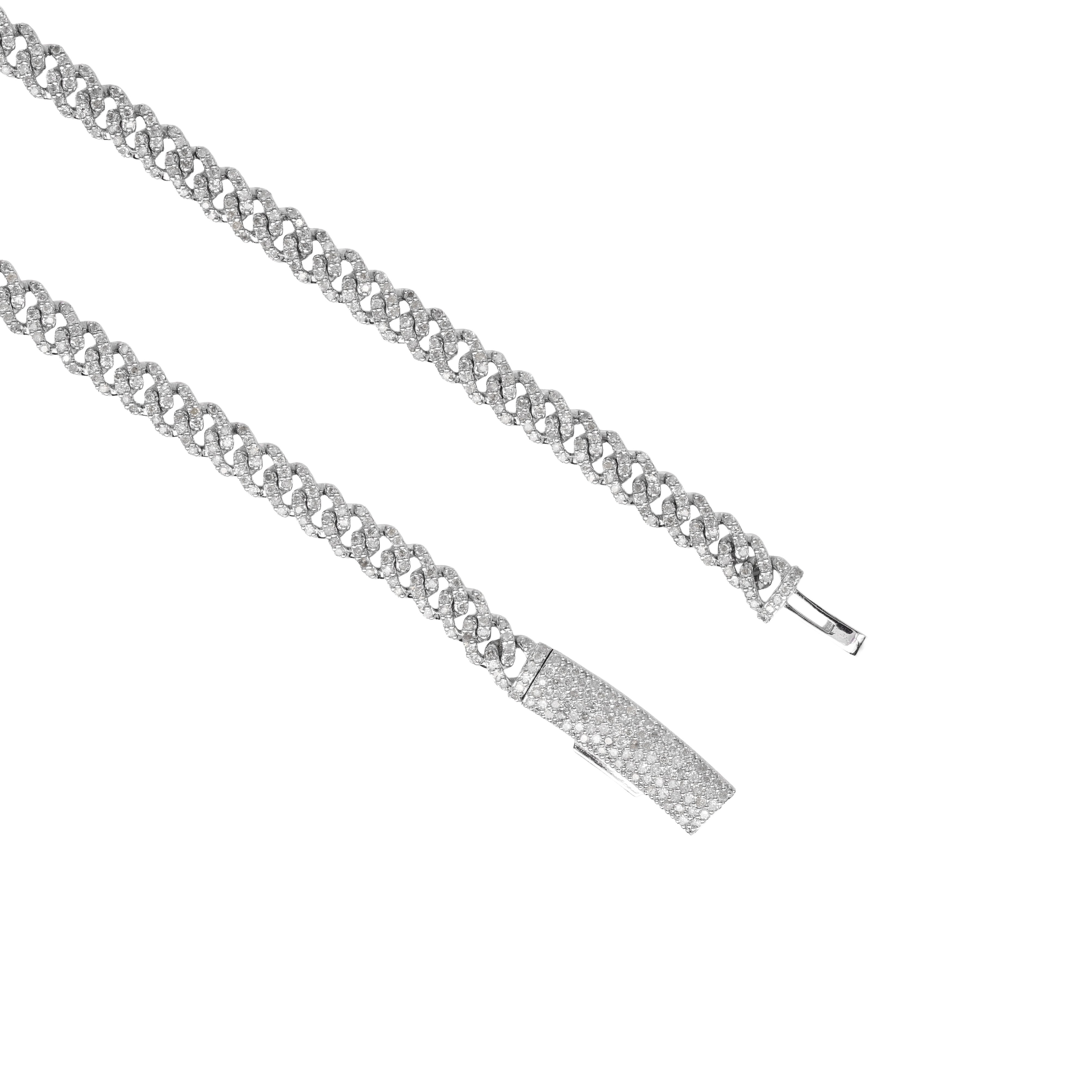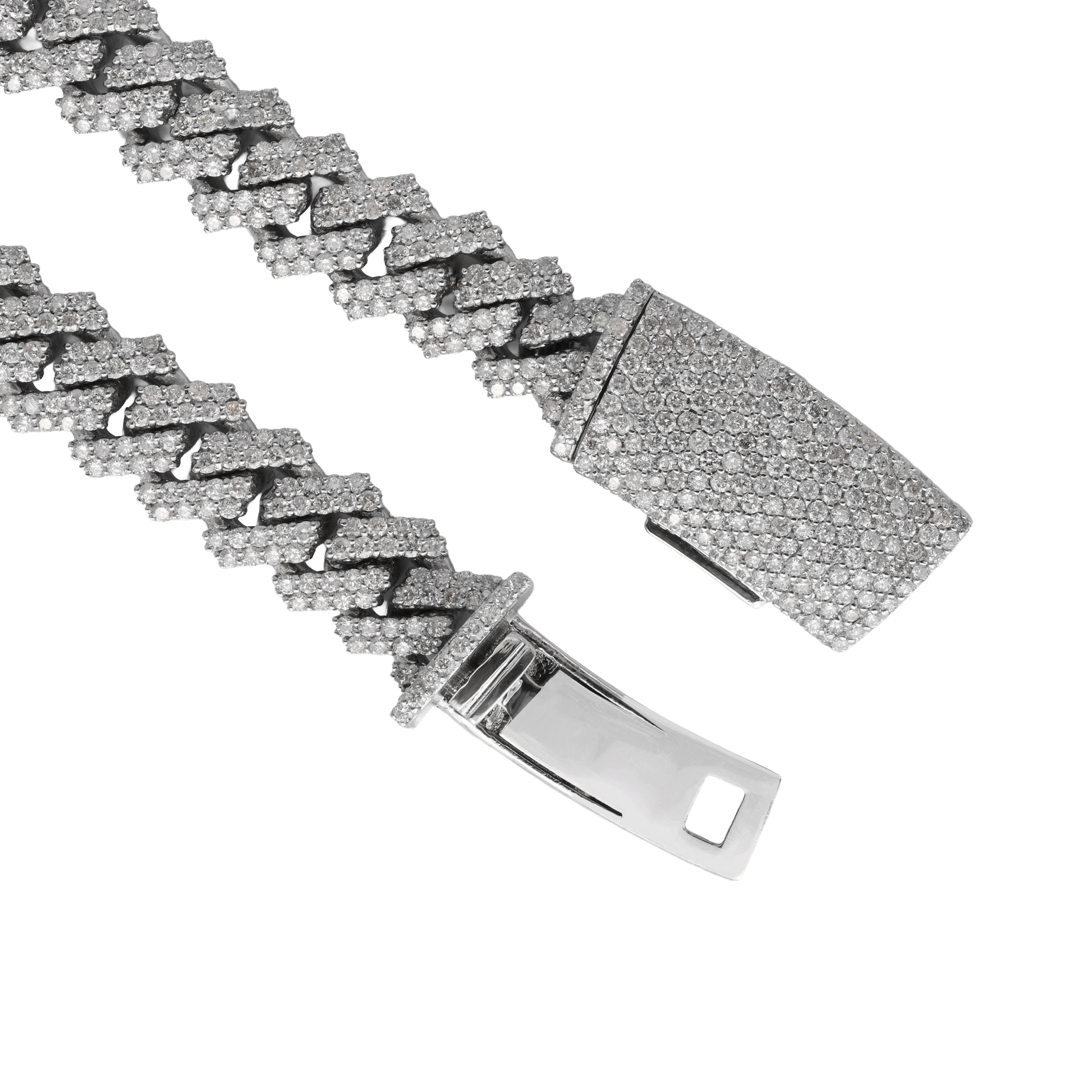 14K White Gold Miami Cuban Link Diamond Chain 130 Gr