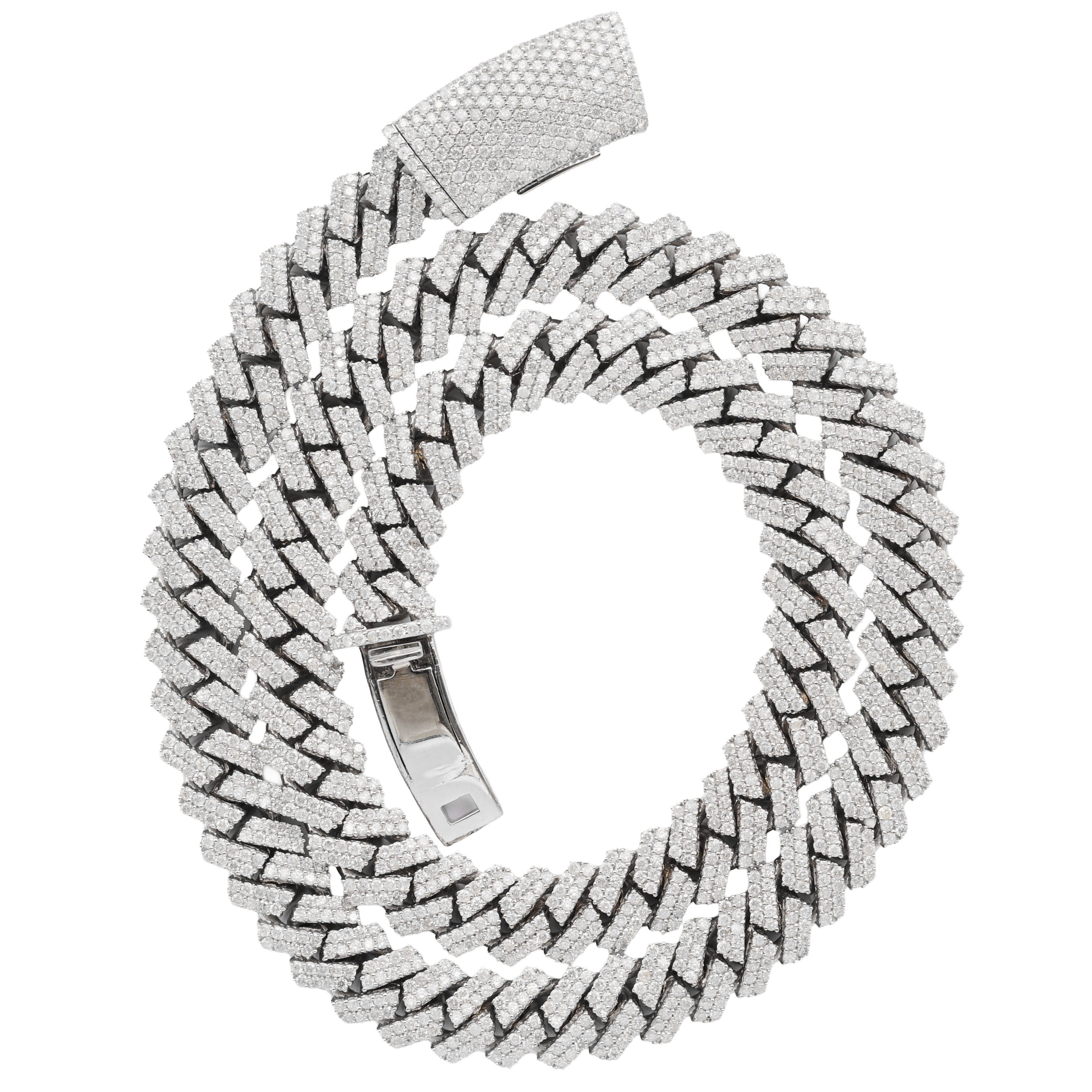 14K White Gold Miami Cuban Link Diamond Chain 235 Gr