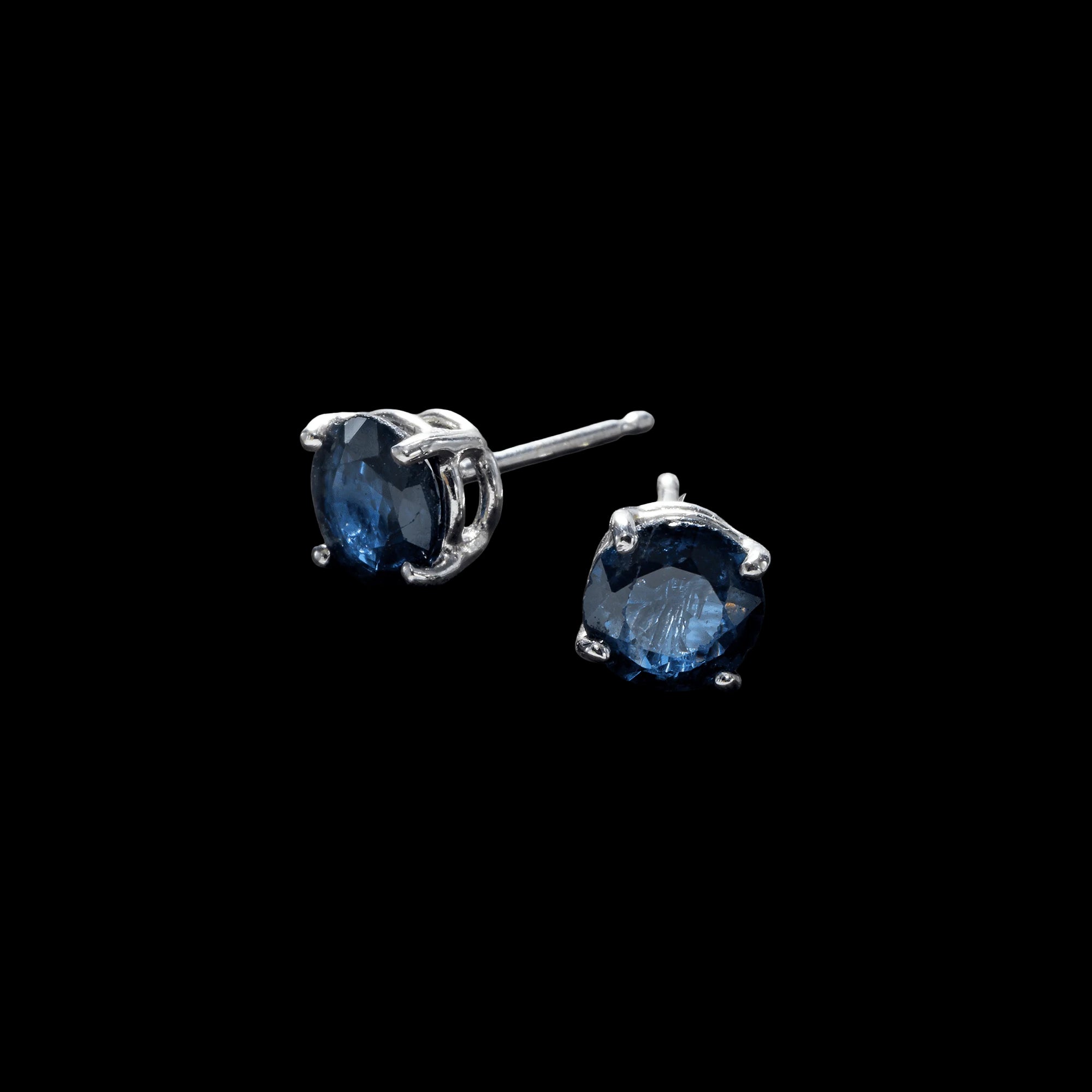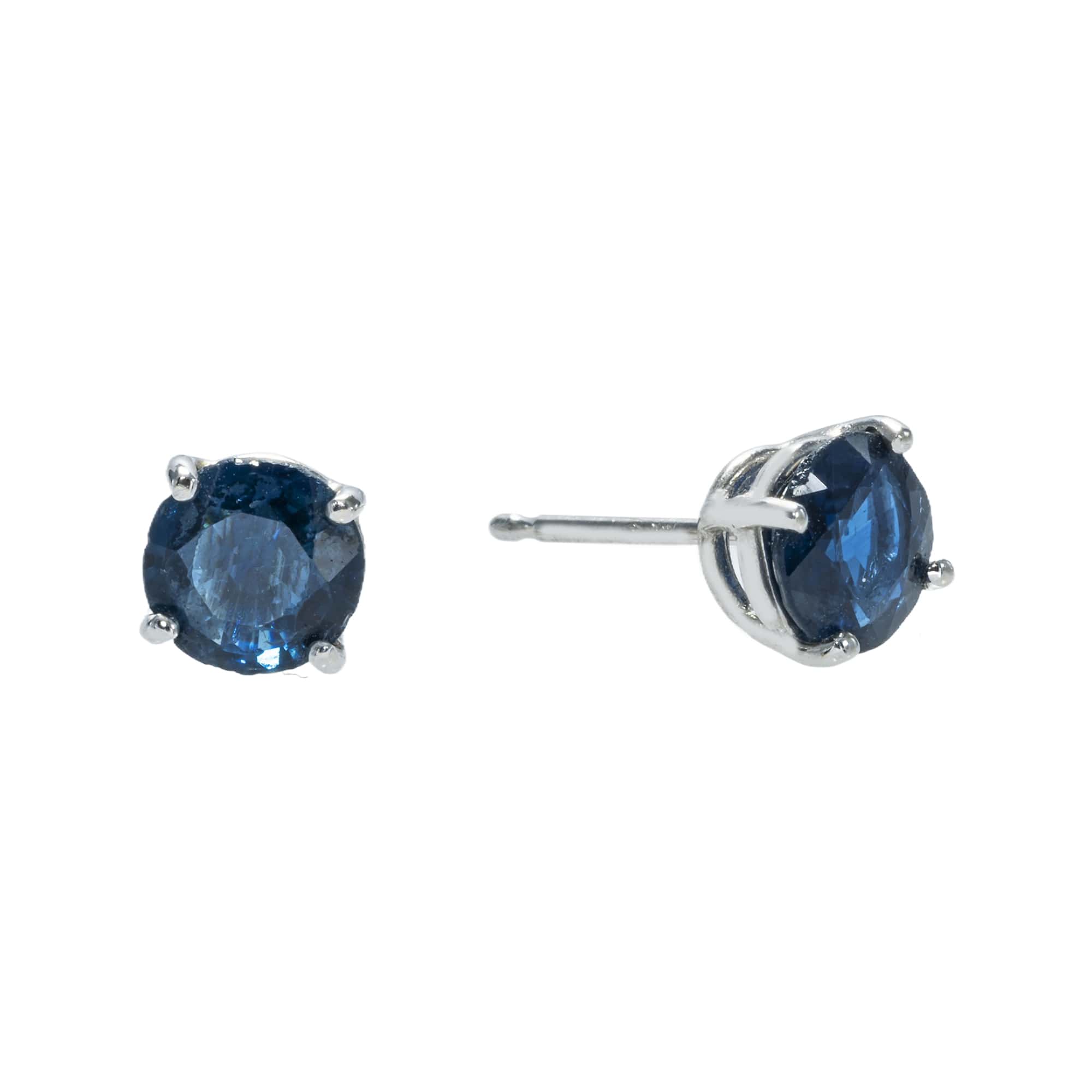 14K White Gold Blue Sapphire Solitaire Stud 1.00 ctw. Round Diamond Earrings