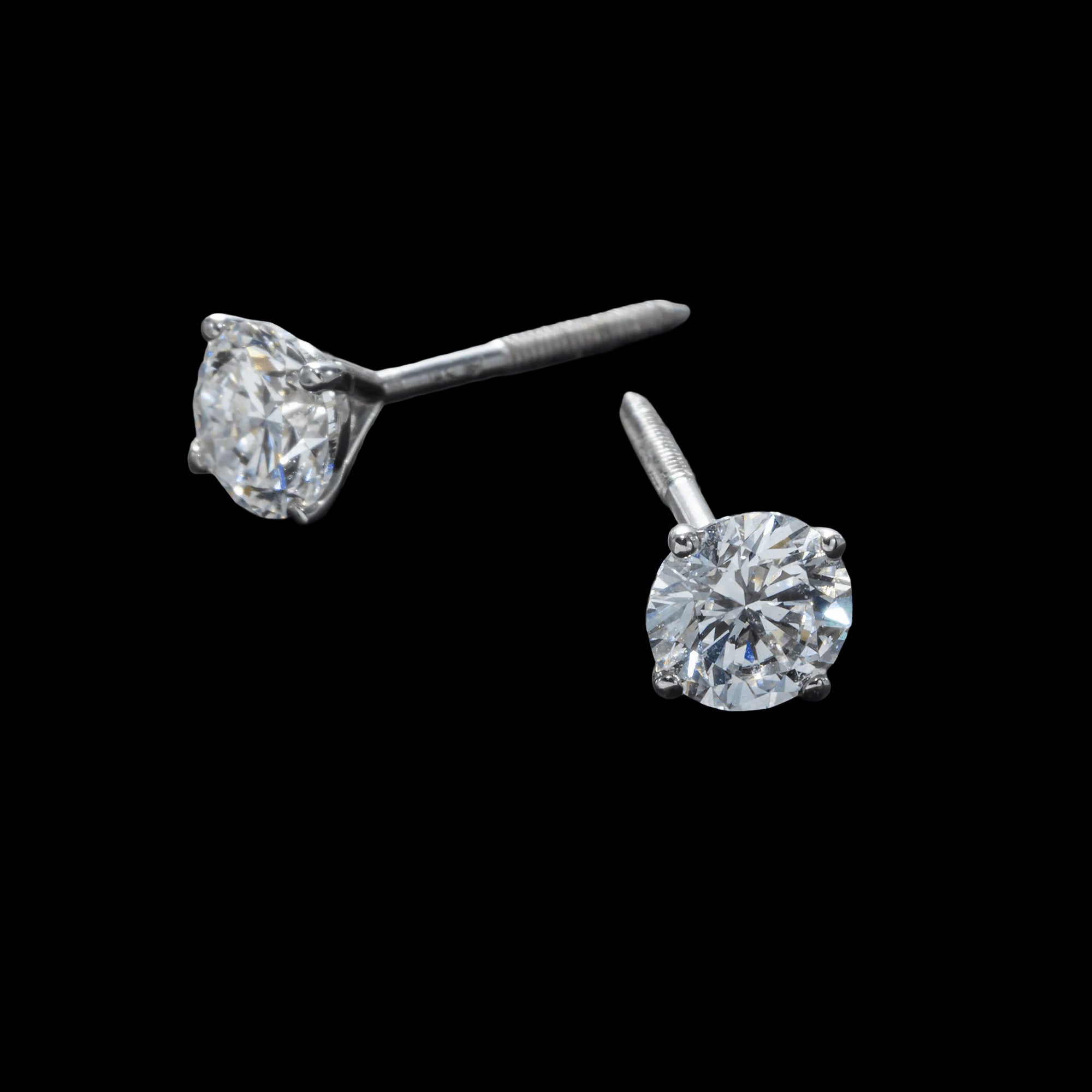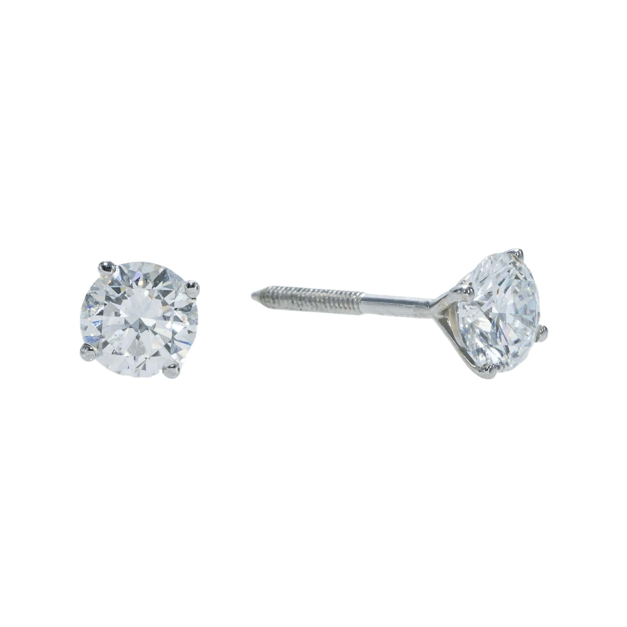 14K White Gold Solitaire Stud 3.00 ctw. Round Diamond Earrings