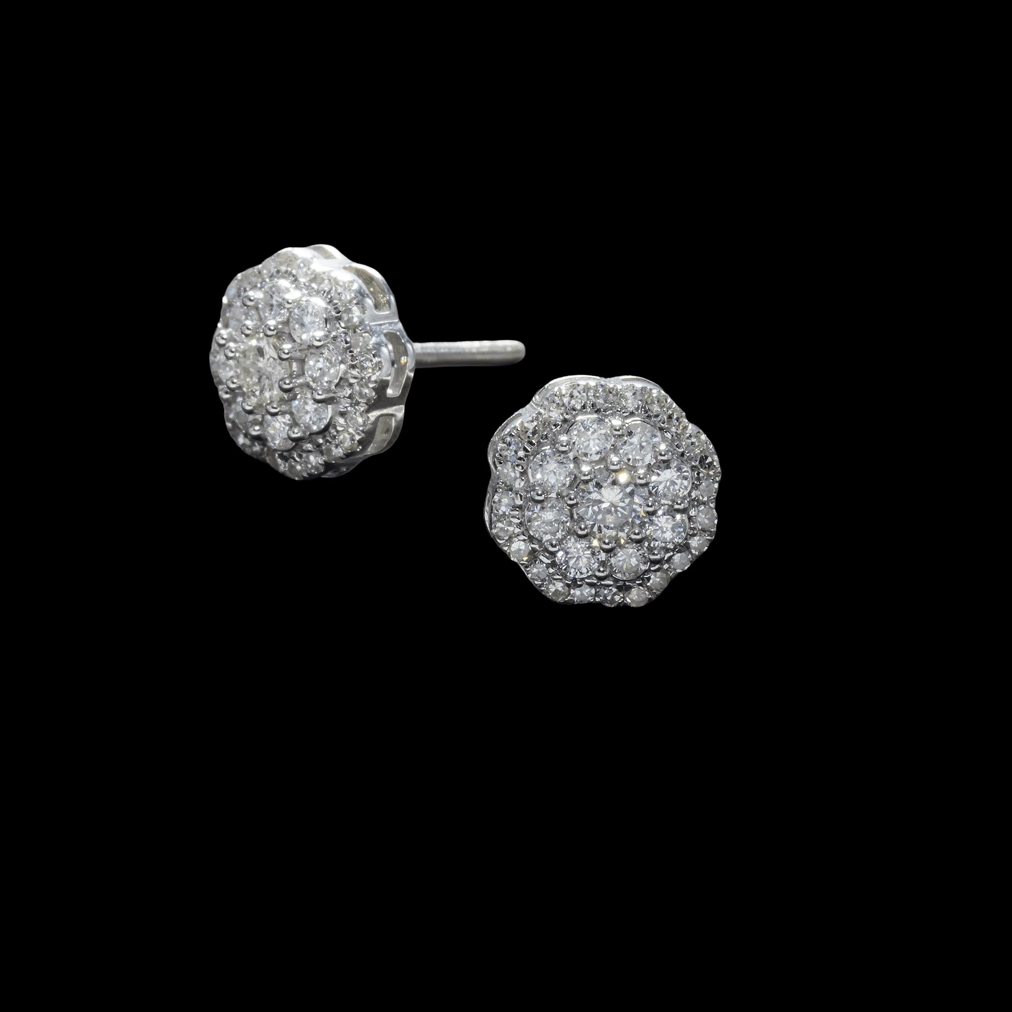 14K White Gold Round Flower Cluster Stud 0.69 ctw. Round Diamond Earrings