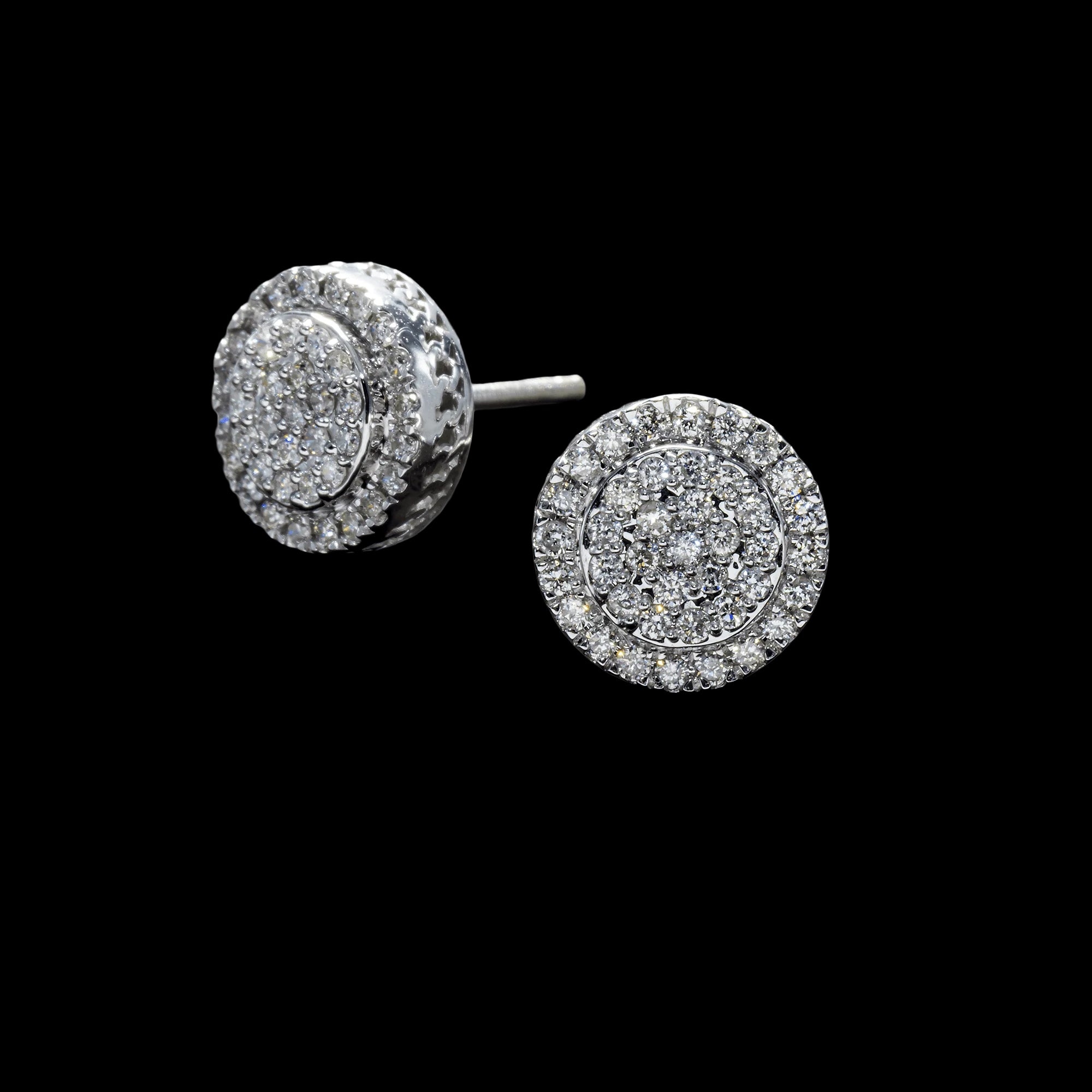 14K White Gold Round Halo Cluster Stud 0.58 ctw. Round Diamond Earrings