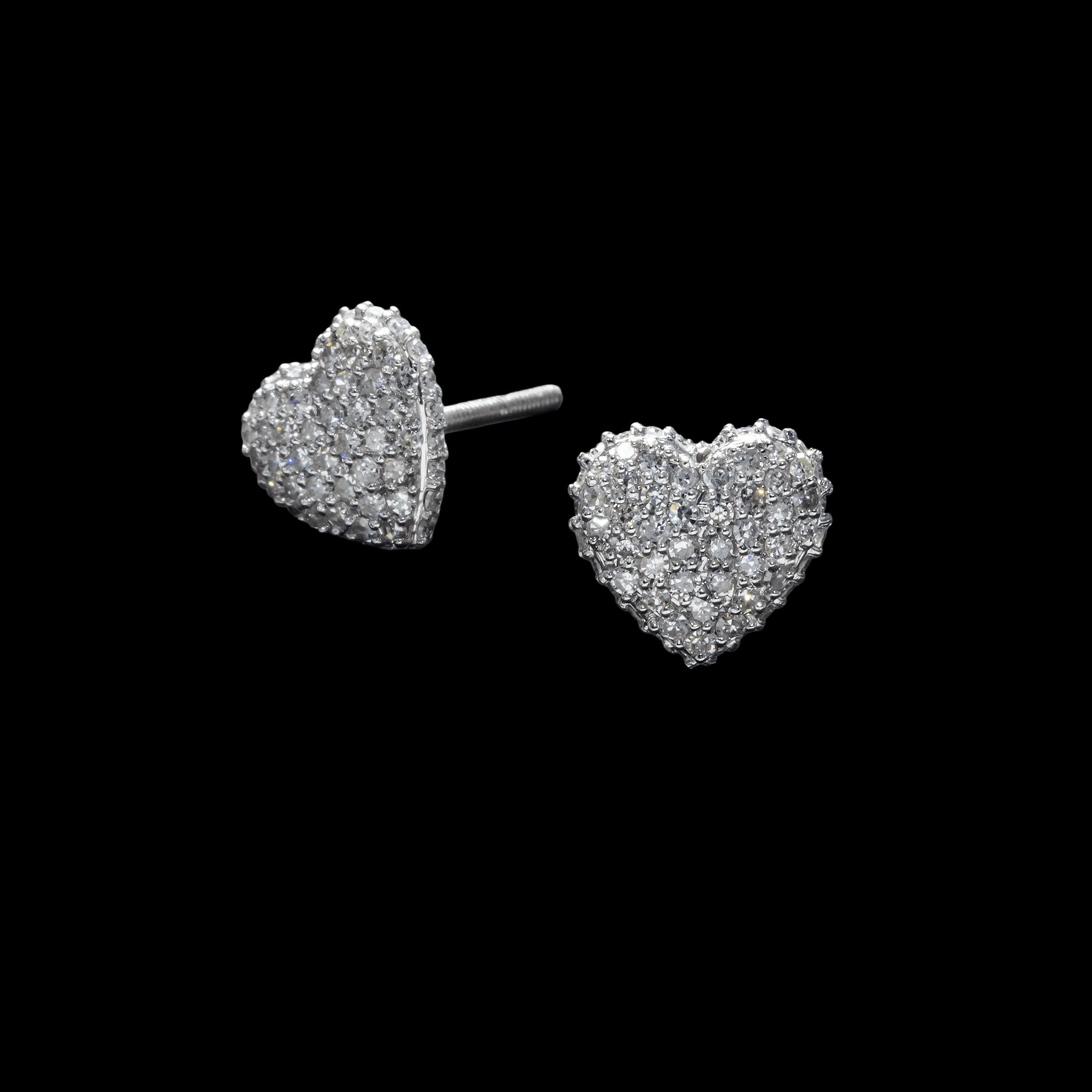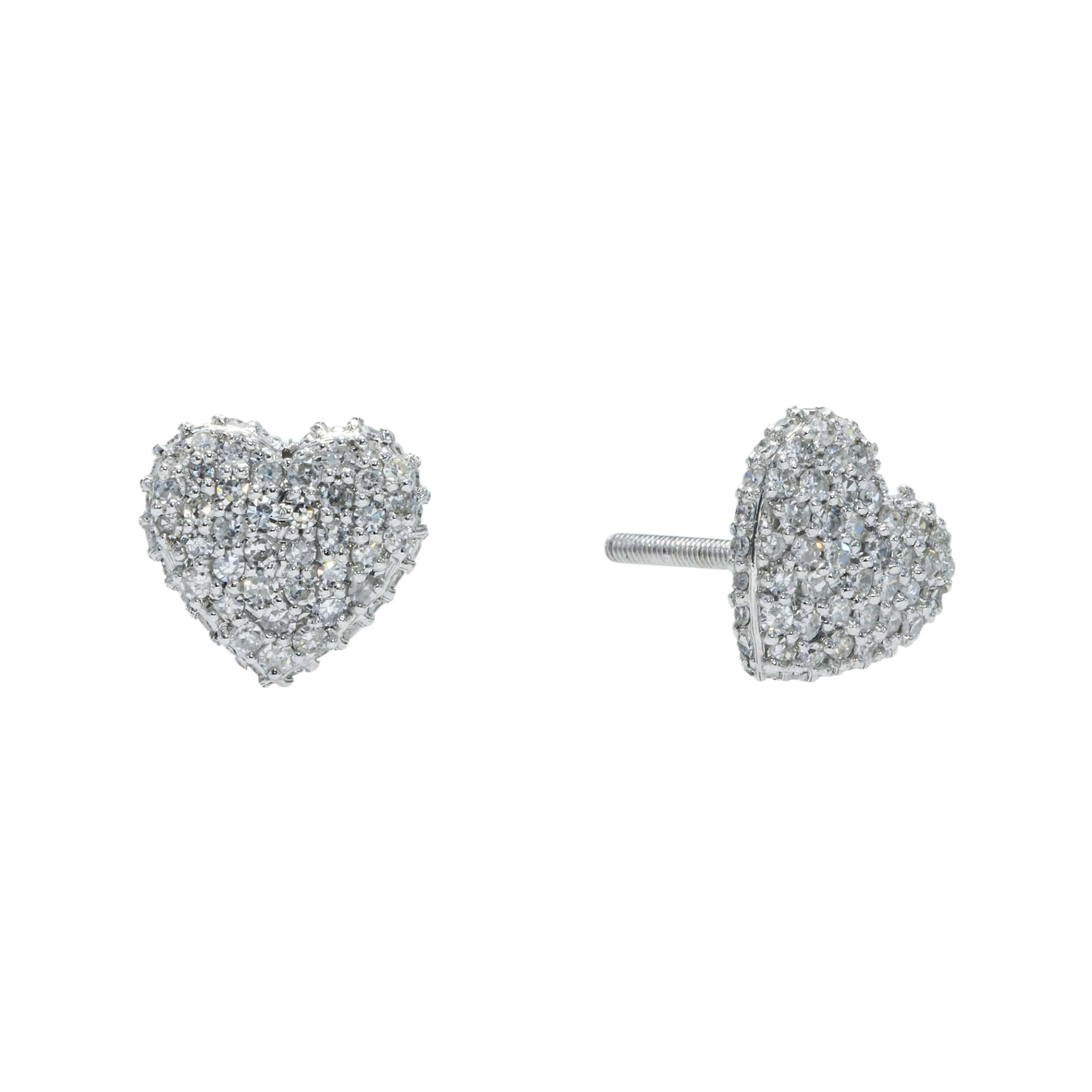 14K White Gold Heart Pave Set Stud 0.55 ctw. Round Diamond Earrings