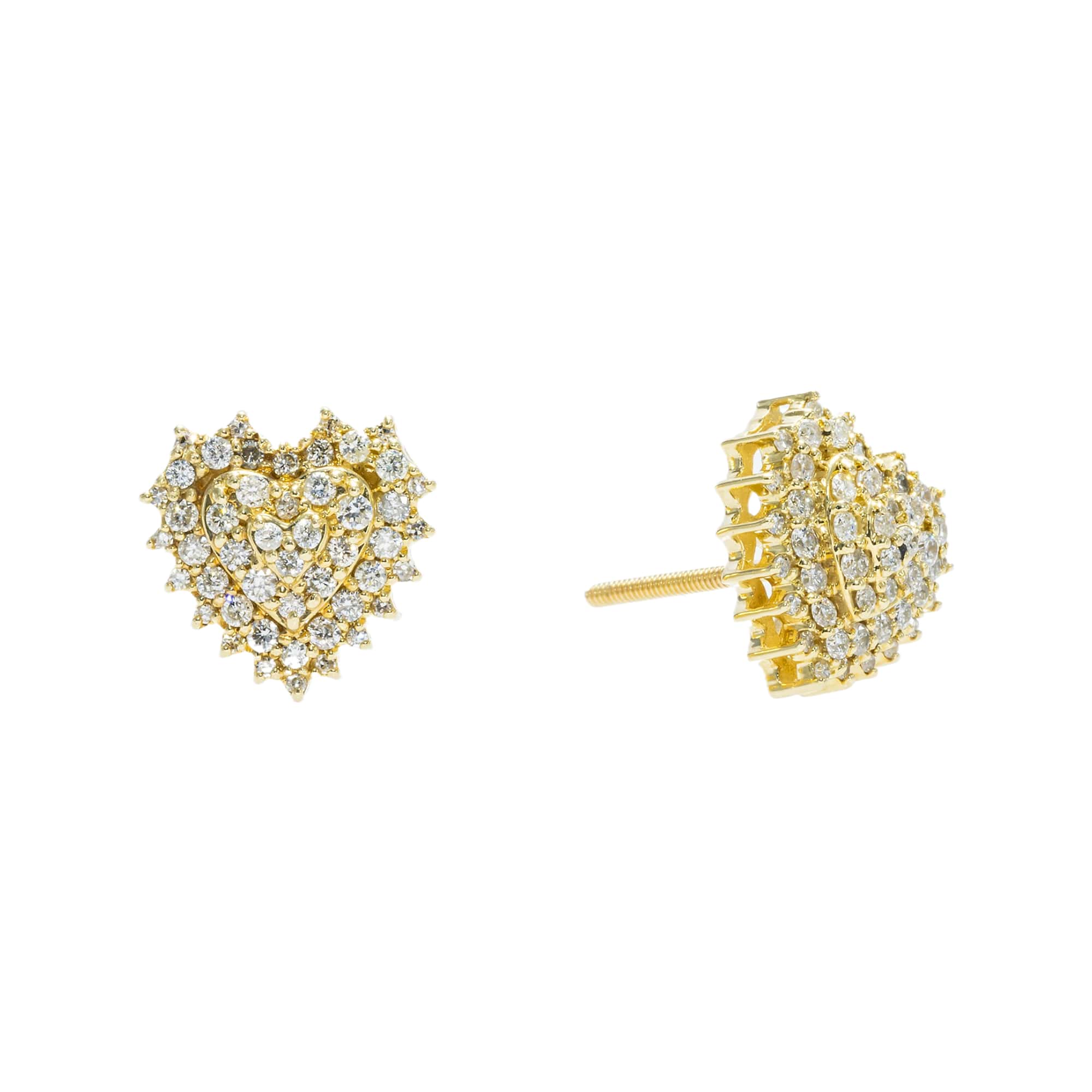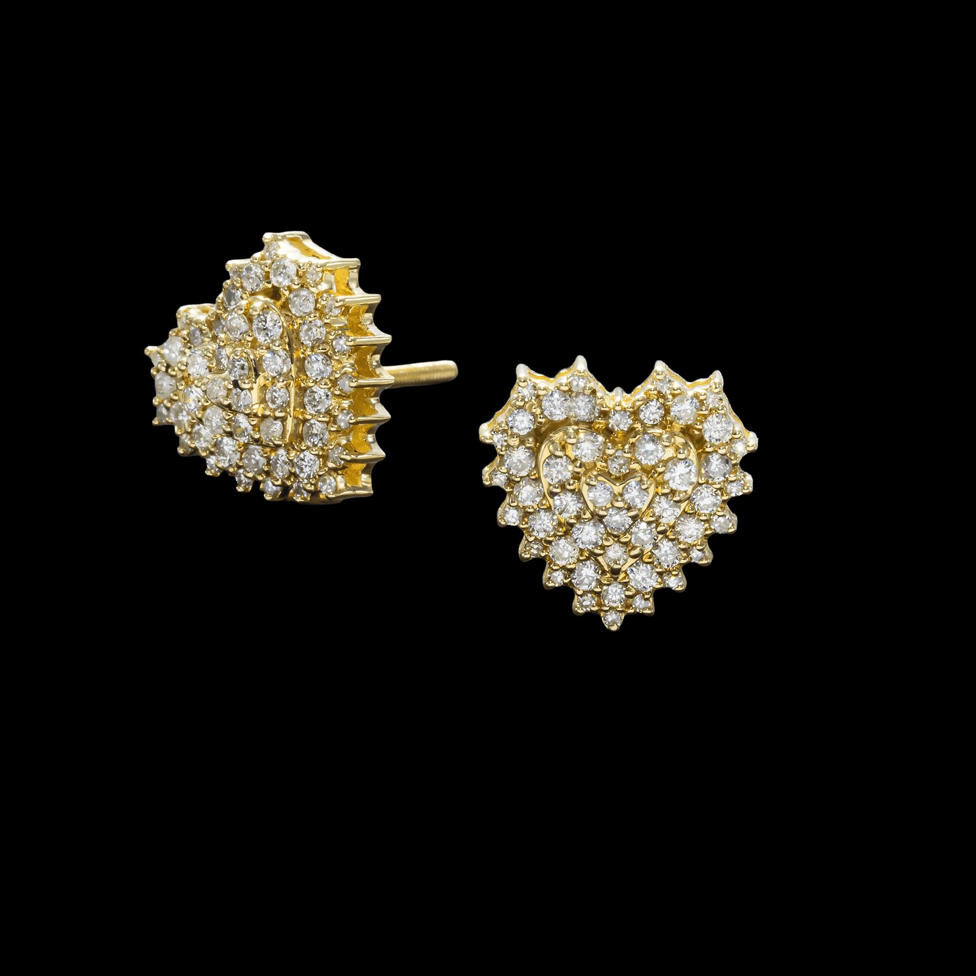 14K Yellow Gold Heart Prong Set Stud 0.64 ctw. Round Diamond Earrings