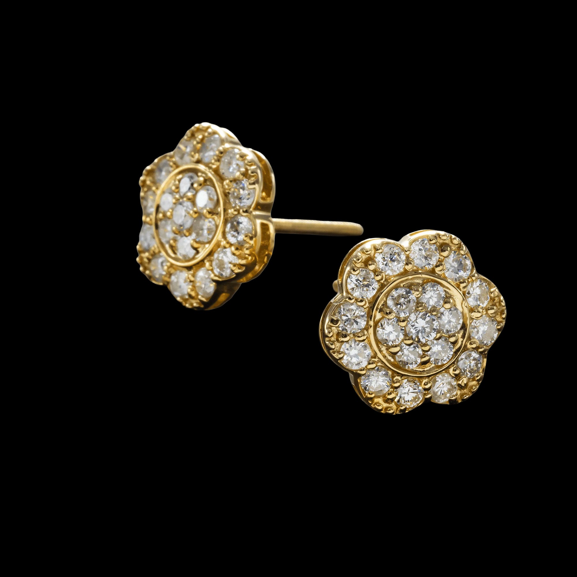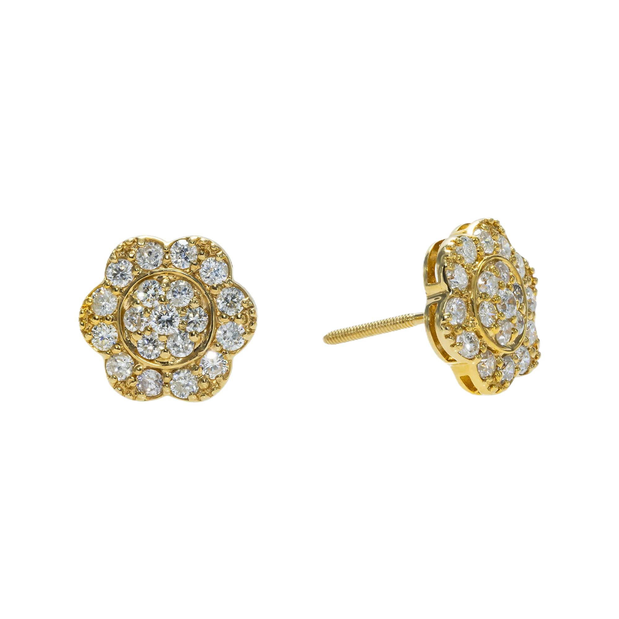 14K Yellow Gold Round Flower Cluster Stud 0.98 ctw. Round Diamond Earrings