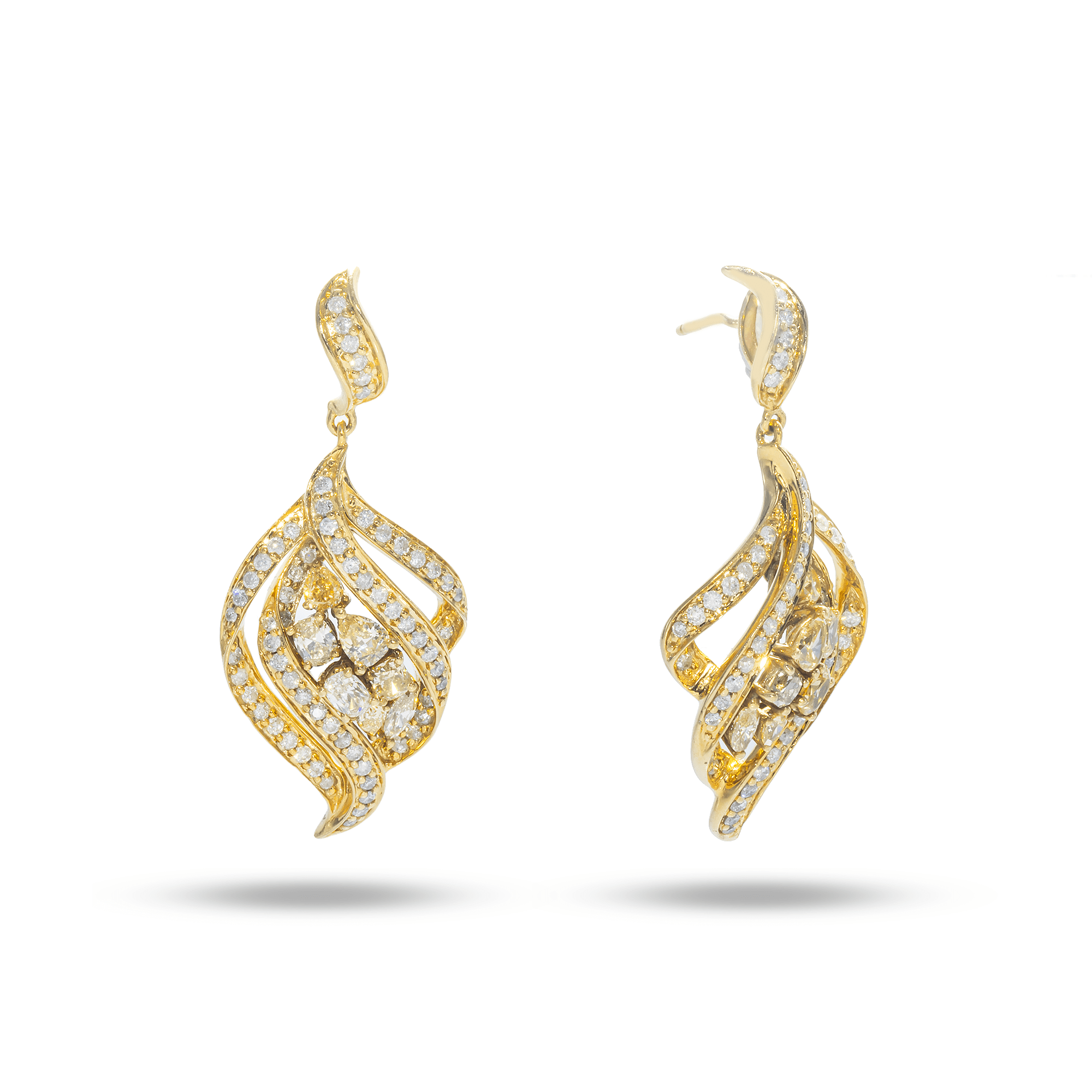 14K Yellow Gold Fancy Filigree Yellow Color Brilliant Dangle 8.00 ctw. Round Diamond Earrings
