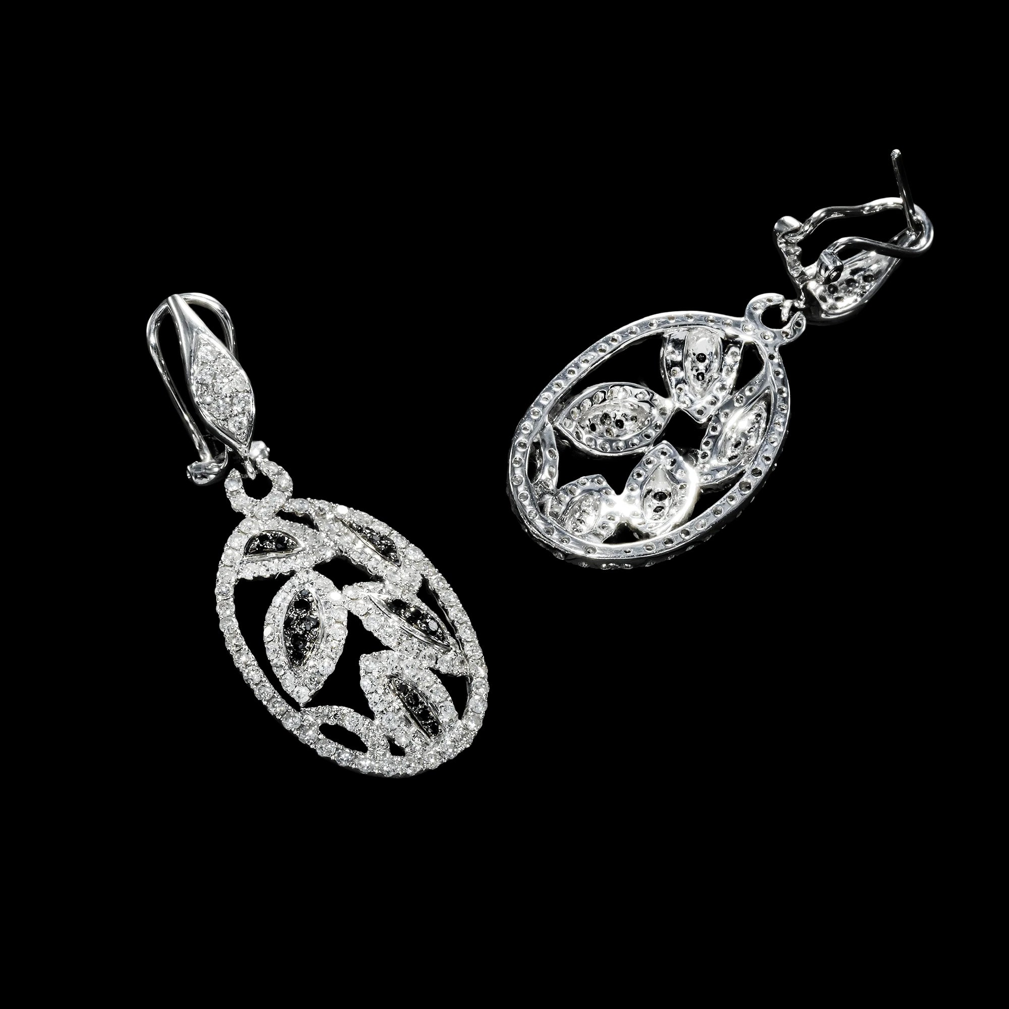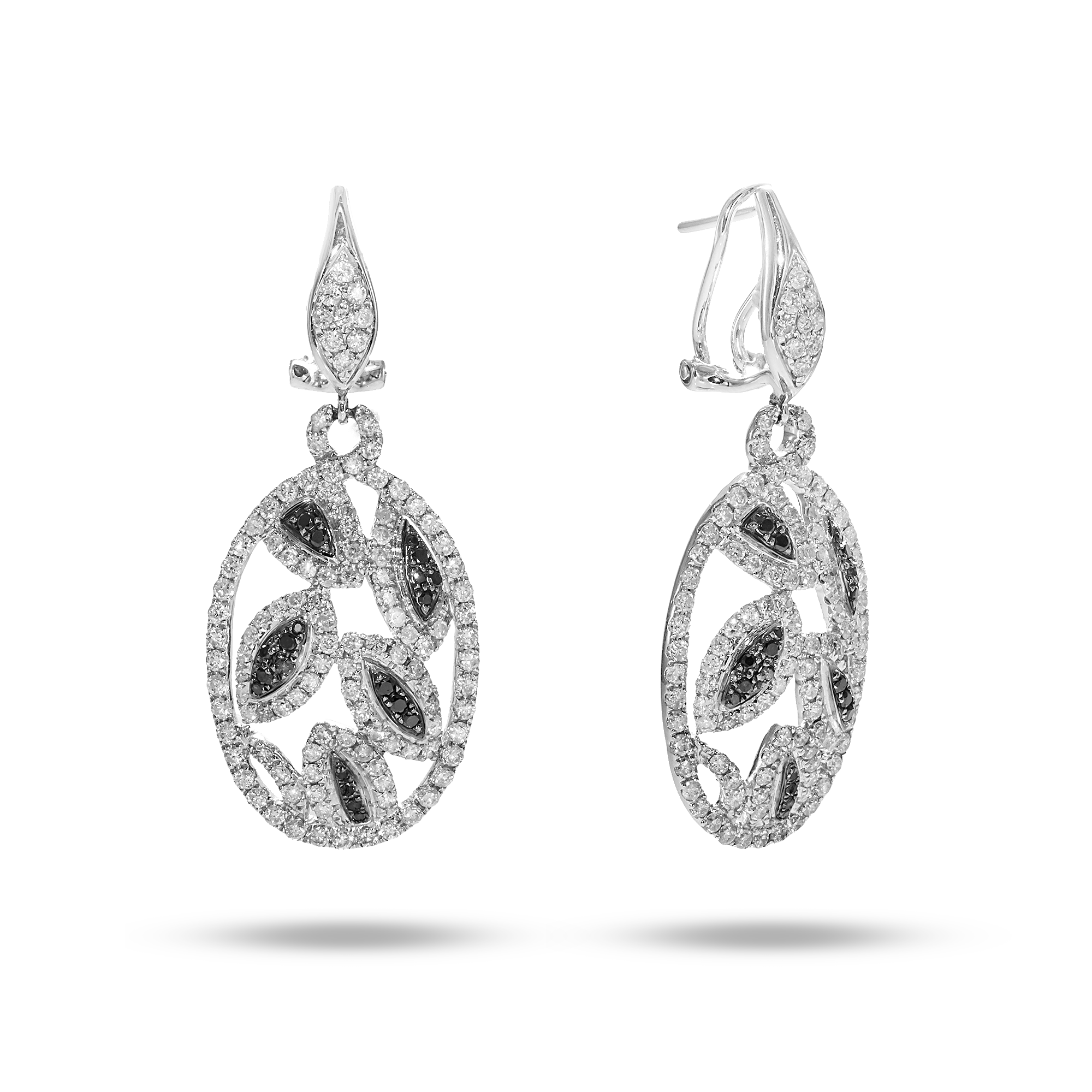 14K White Gold Fancy Black Color Brilliant Dangle Leaves 1.70 ctw. Round Diamond Earrings
