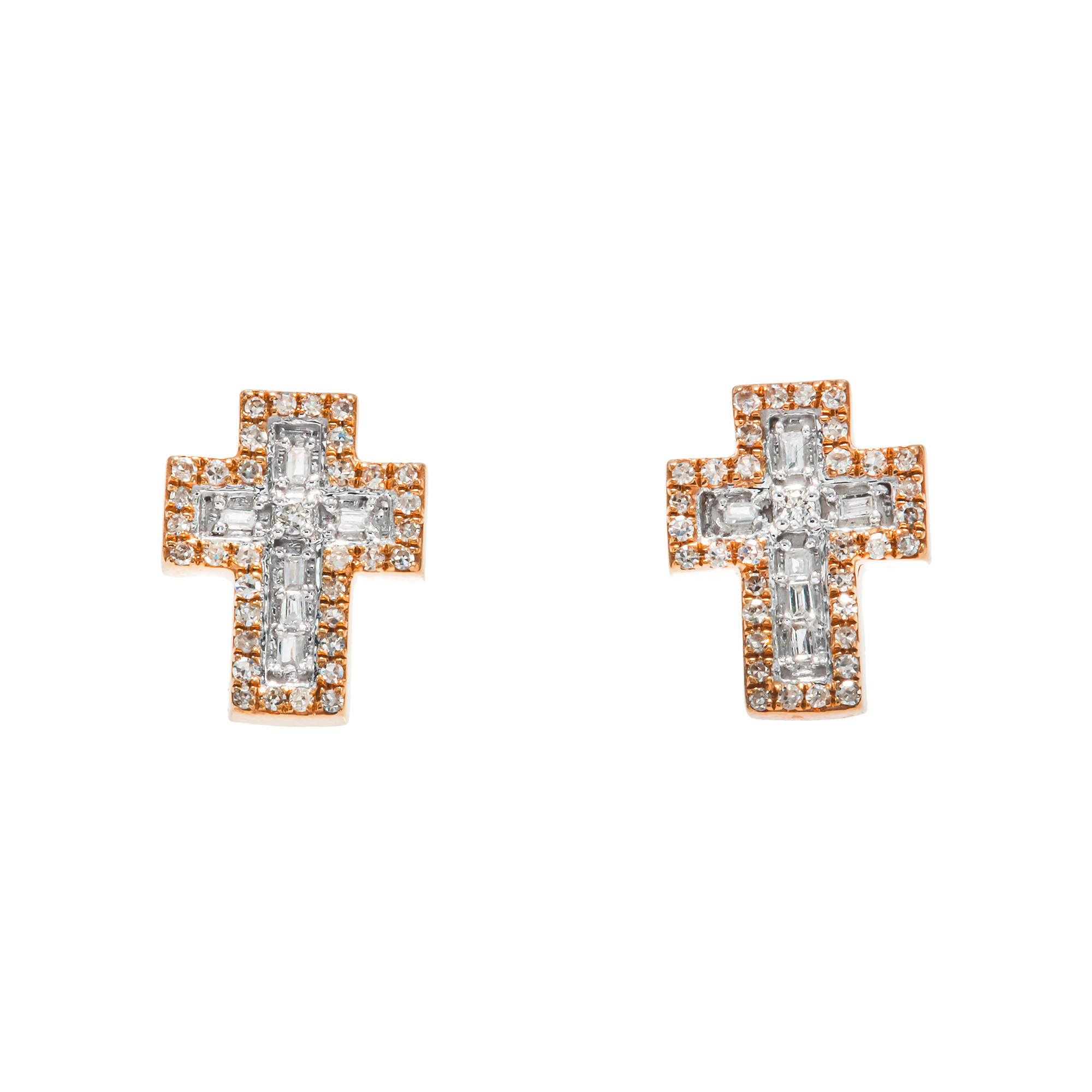 14K Rose Gold Fancy Cross Stud 0.39 ctw. Baguette & Round Diamond Earrings