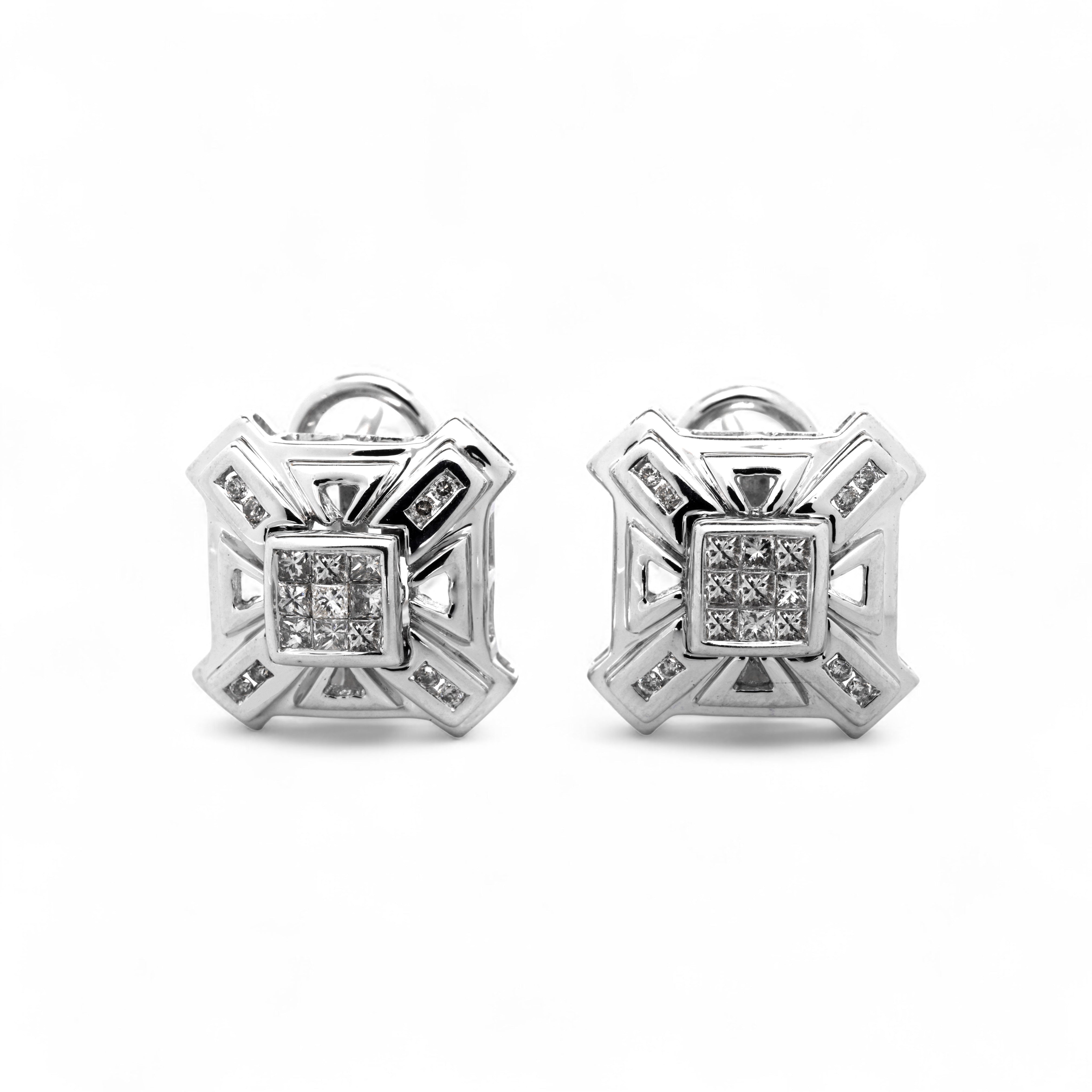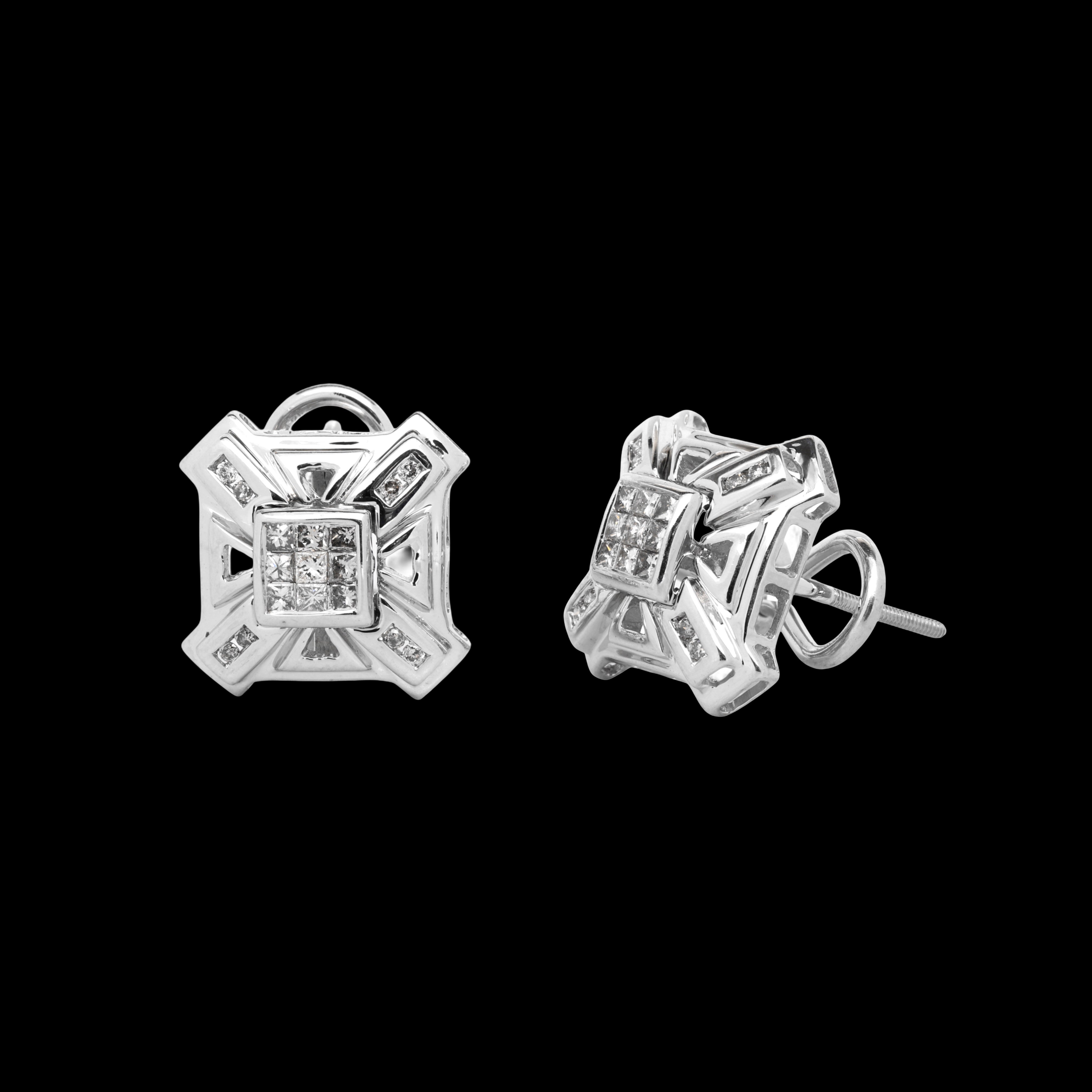14K White Gold 0.50 Carat Square Stud Diamond Earrings