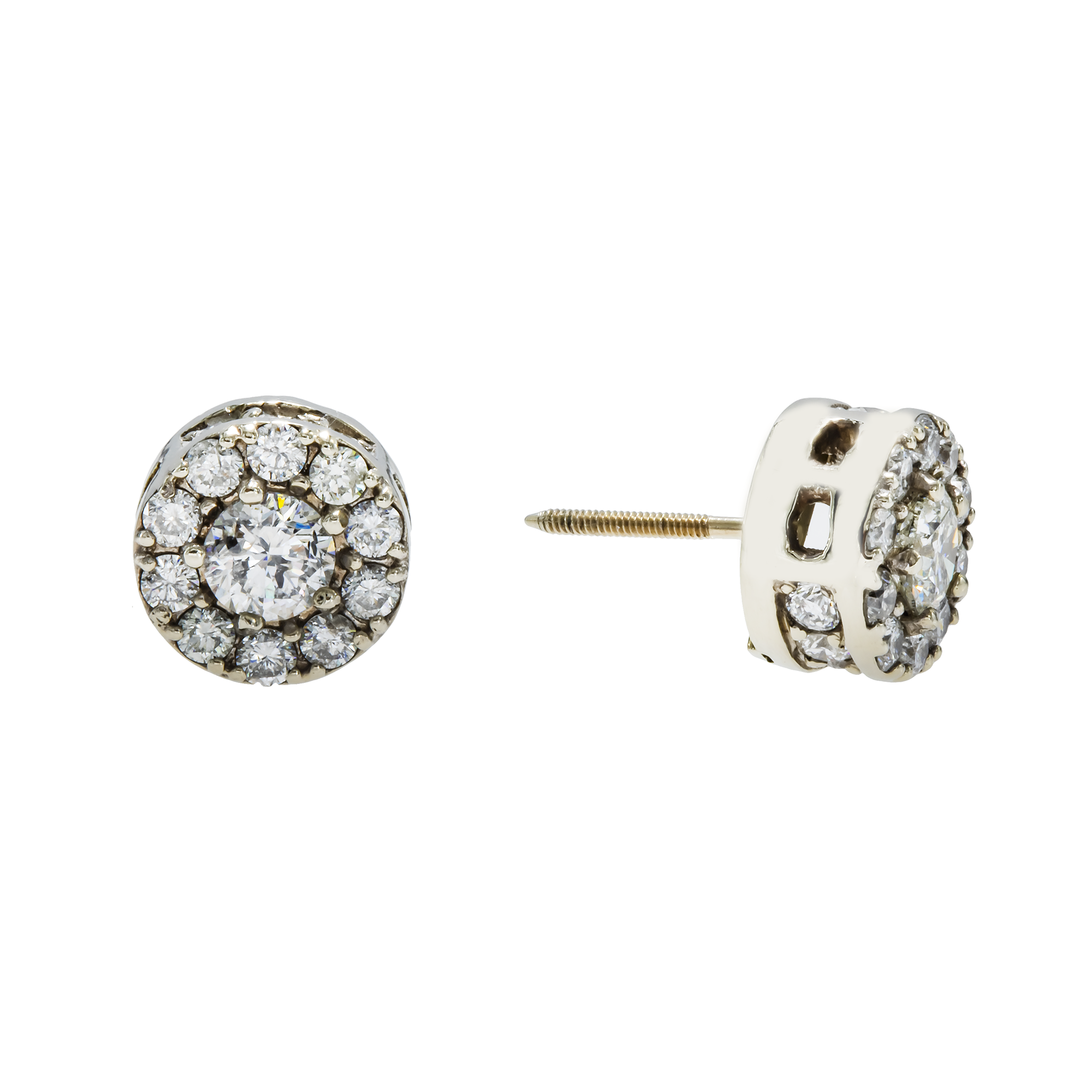 14K White Gold Classic Round Cluster 3.10 ctw. Round Diamond Earrings