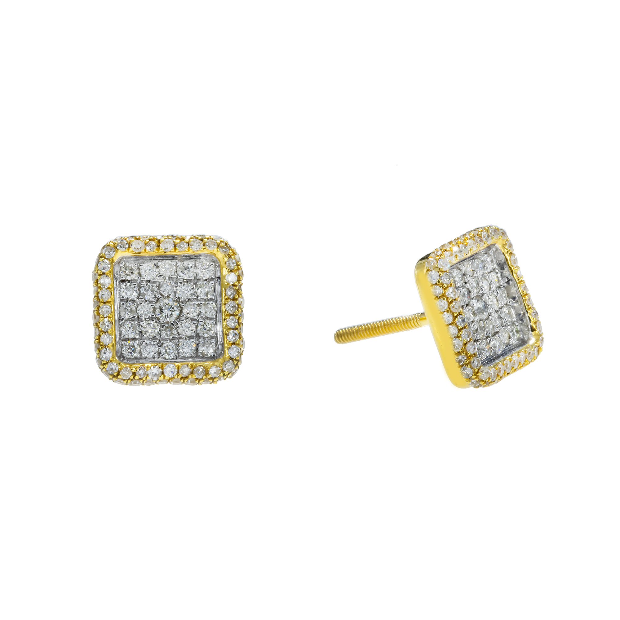 14K Two Tone Gold Square Cluster Pave 0.78 ctw. Round Diamond Earring