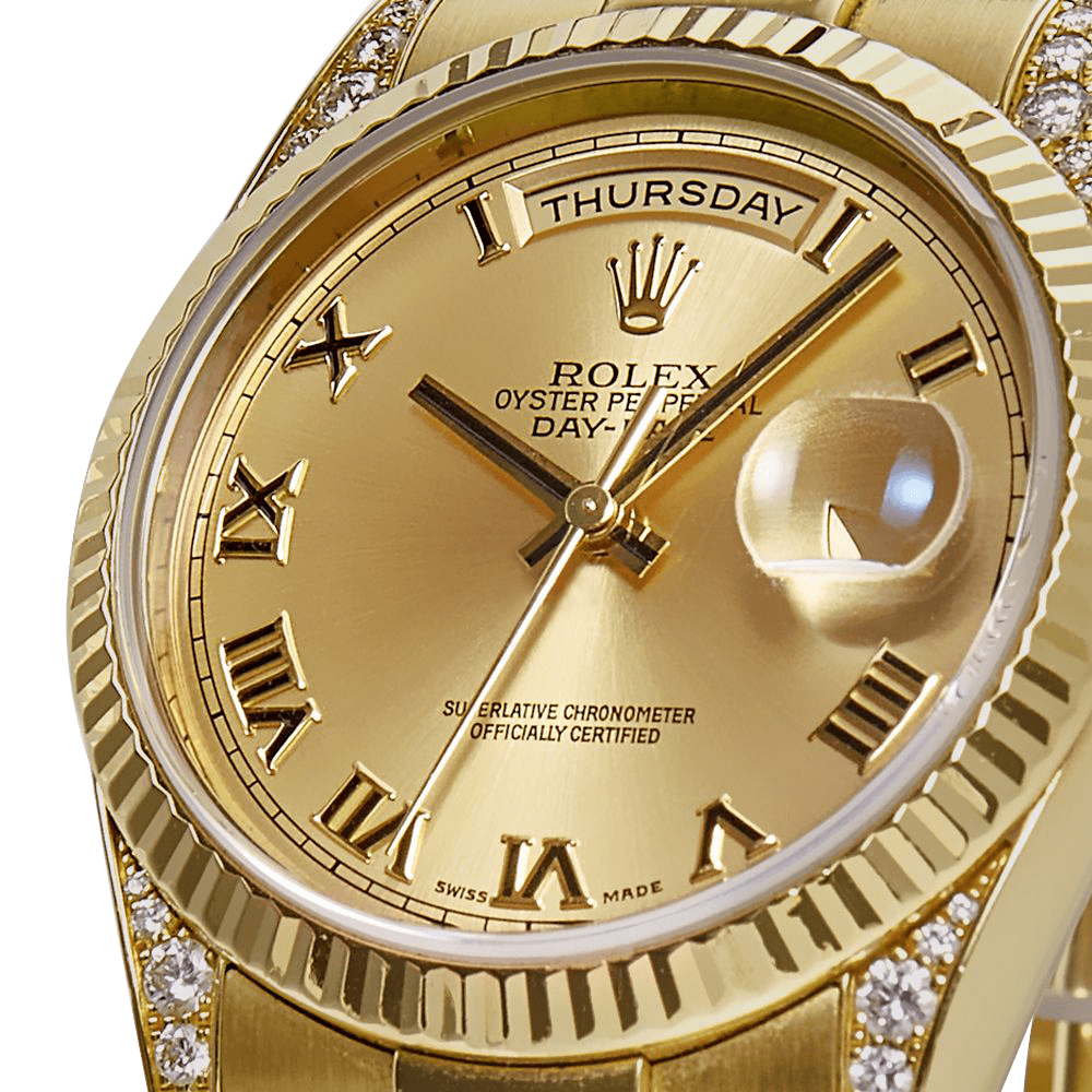 Rolex Day-Date 36 - President Gold Diamond Champagne Roman Dial Watch 118338
