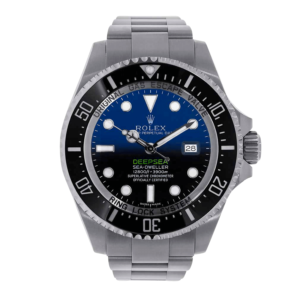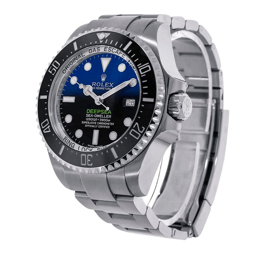 To commemorate the historic dive, undertaken by James Cameron, Rolex created a divers watch that matched the wonder only he could deliver. The 126660 reference Sea-Dweller comes with a 44mm stainless-steel case that has a monobloc middle case, a screw-down case back, a 5.5mm domed sapphire crystal and a winding crown. The case features a black, unidirectional, rotatable ceramic bezel with numerals and graduations coated in platinum and a ringlock rystem case architecture with a helium escape valve. The dial showcases a color graduation from blue to black that symbolizes the depths of the water. The dial has luminescent index hour markers and the Deep Sea tag in the center of the dial. The 126660 is powered by the 3235 caliber which has -2/+2 sec/day precision, date and stop second functionality as well as a power reserve of 70 hours. The case is paired with a stainless-steel oyster bracelet that has a fold over clasp. It has a water resistance of 3,900 meters (12,800 feet).