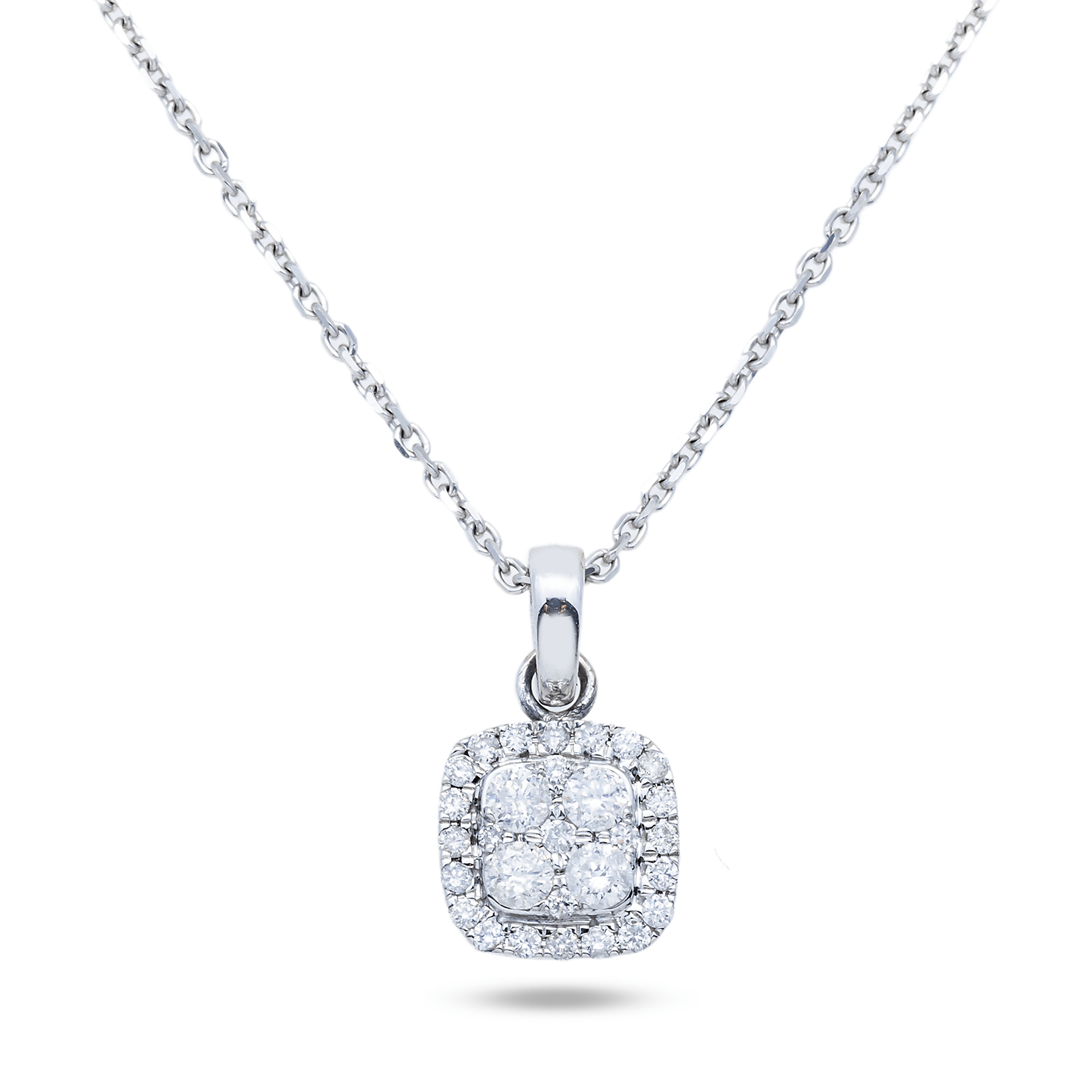 14K White Gold Square Halo Pendant Necklace | 0.75 Carat Round-Cut Diamond