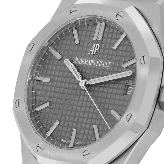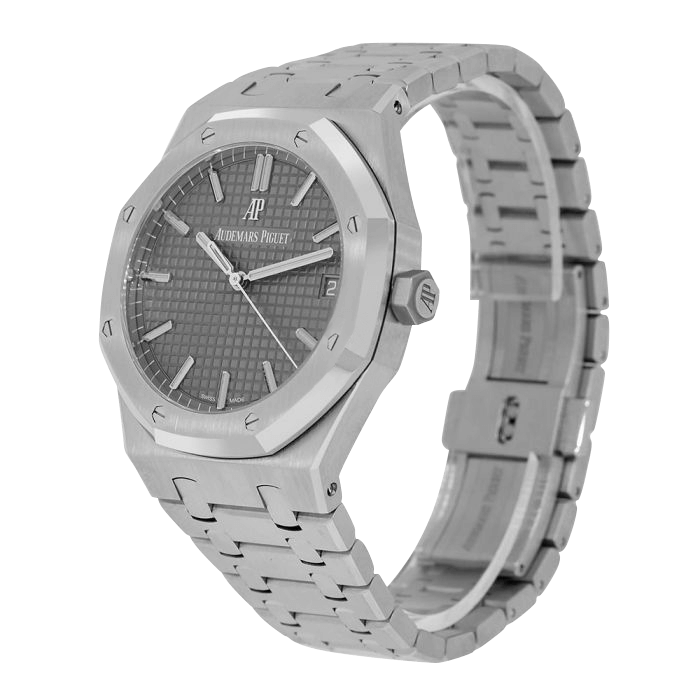 Audemars Piguet improved their classic Royal Oak 15400 series when they created the 15500 series which has wider indexes, a date window further away from the center of the timepiece and a minute train printed on the external train. The 15500ST.OO.1220ST.02 has a stainless-steel case that is 41mm in diameter and 10.4mm thick with glareproofed sapphire crystal and case back with a screw-locked crown. The dial is an elegant slate grey that has a Grande Tapisserie pattern with luminescent, white gold applied hour markers and hands. The 15500ST.OO.1220ST.02 is powered by the self-winding 4302 Caliber that has date functionality and a power reserve of 70 hours. The Royal Oak case is paired with a stainless-steel bracelet with a fold over clasp. It has a water resistance of 50 meters (164 feet).
