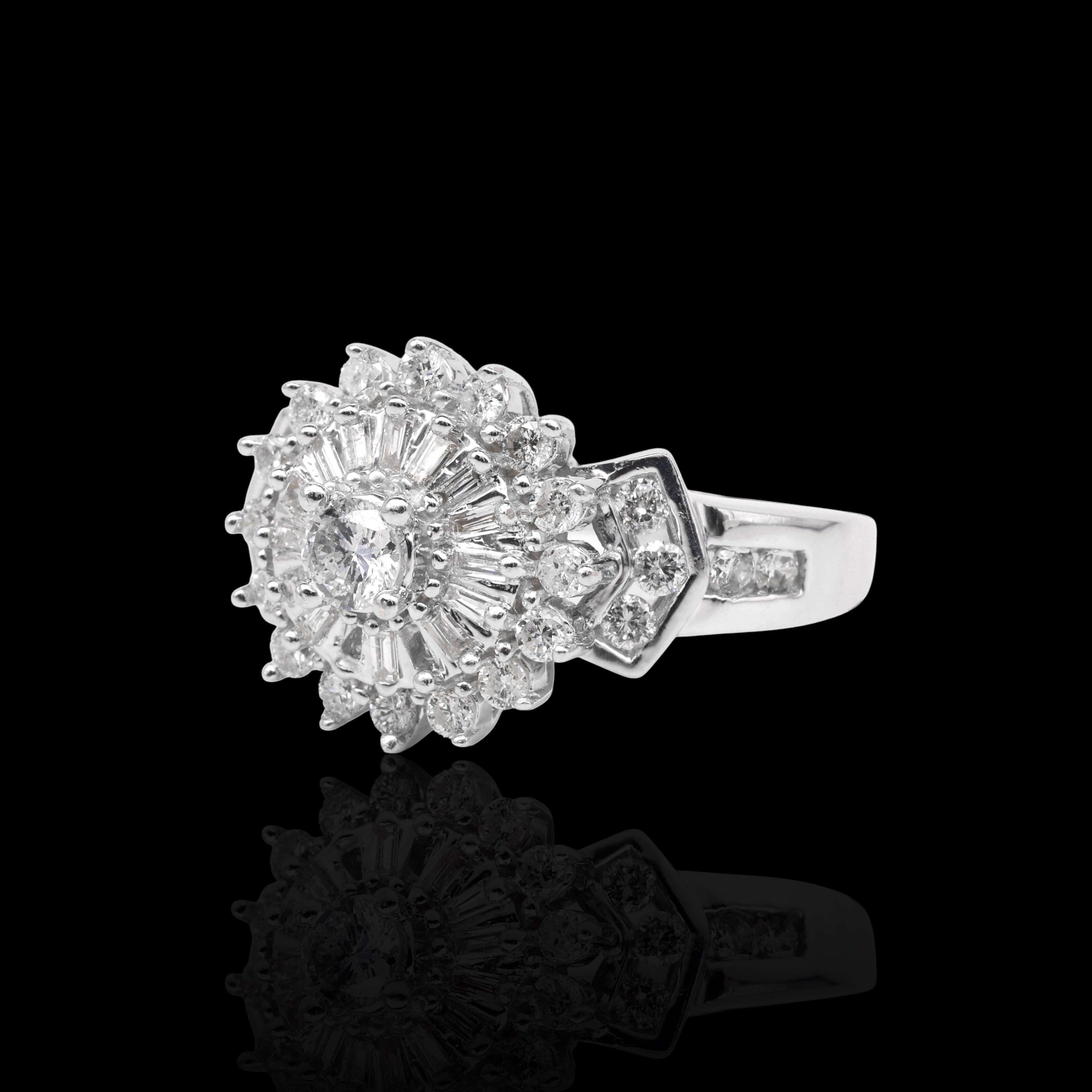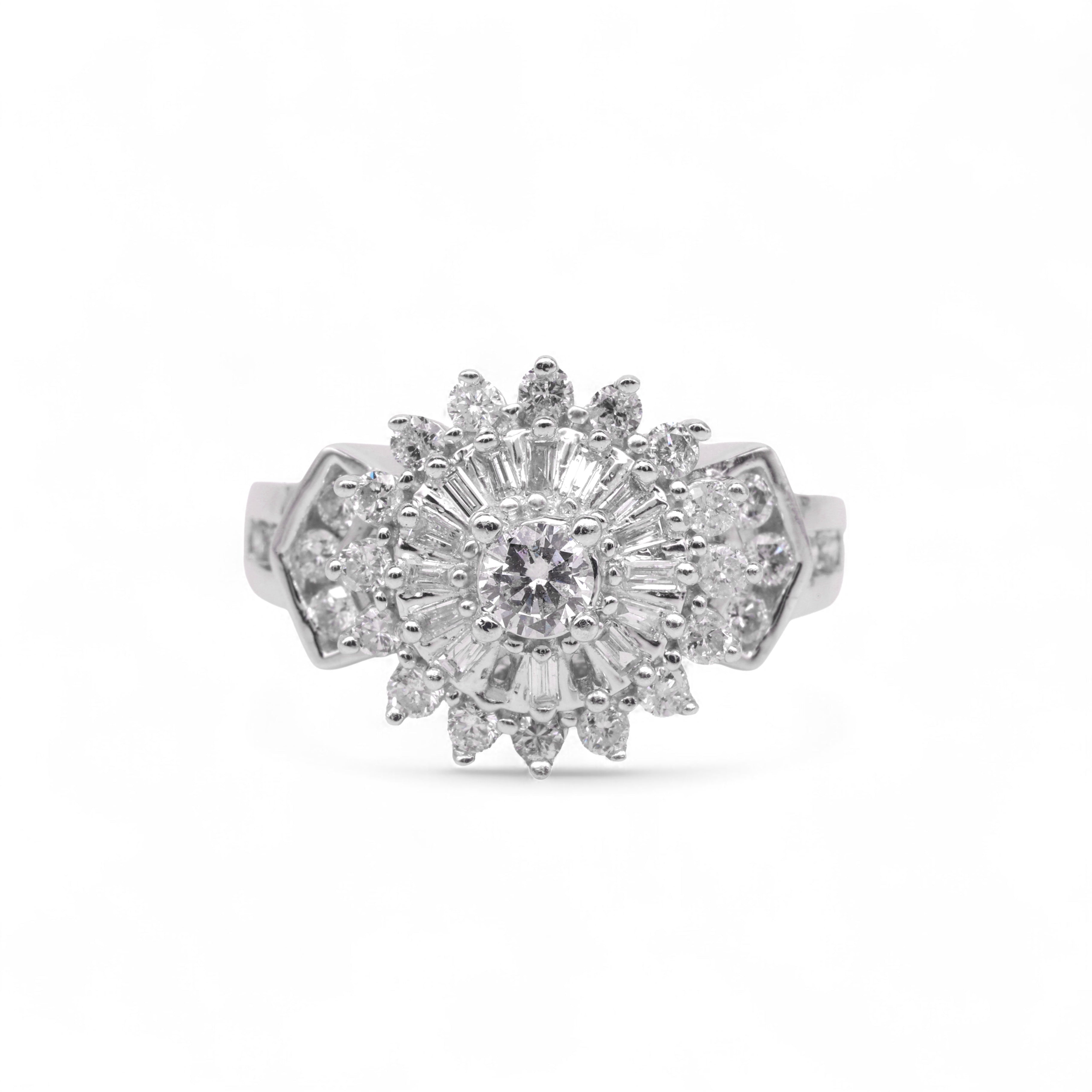 14K White Gold 1.60 Carat Ballerina Halo Diamond Ring