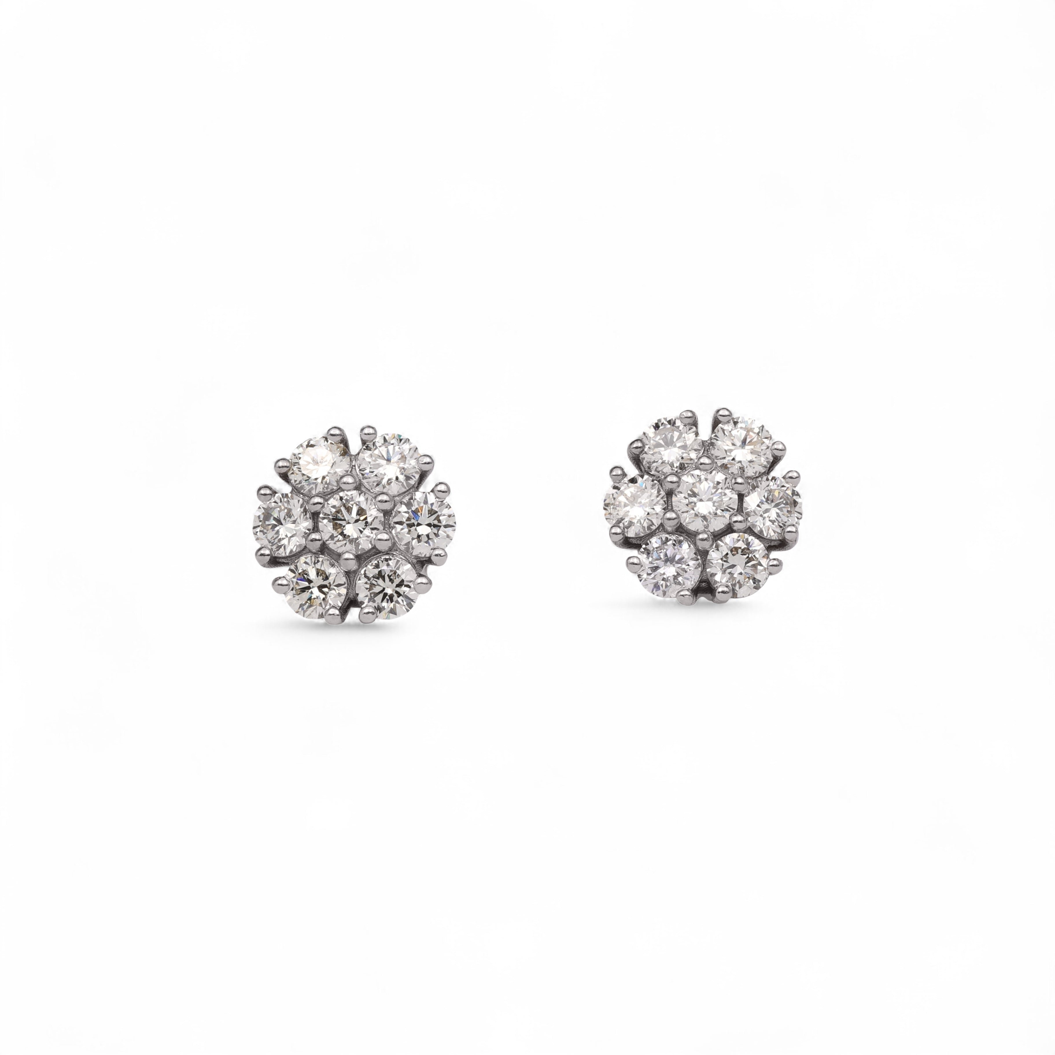 14K White Gold Round Flower Cluster Stud 0.69 ctw. Round Diamond Earrings