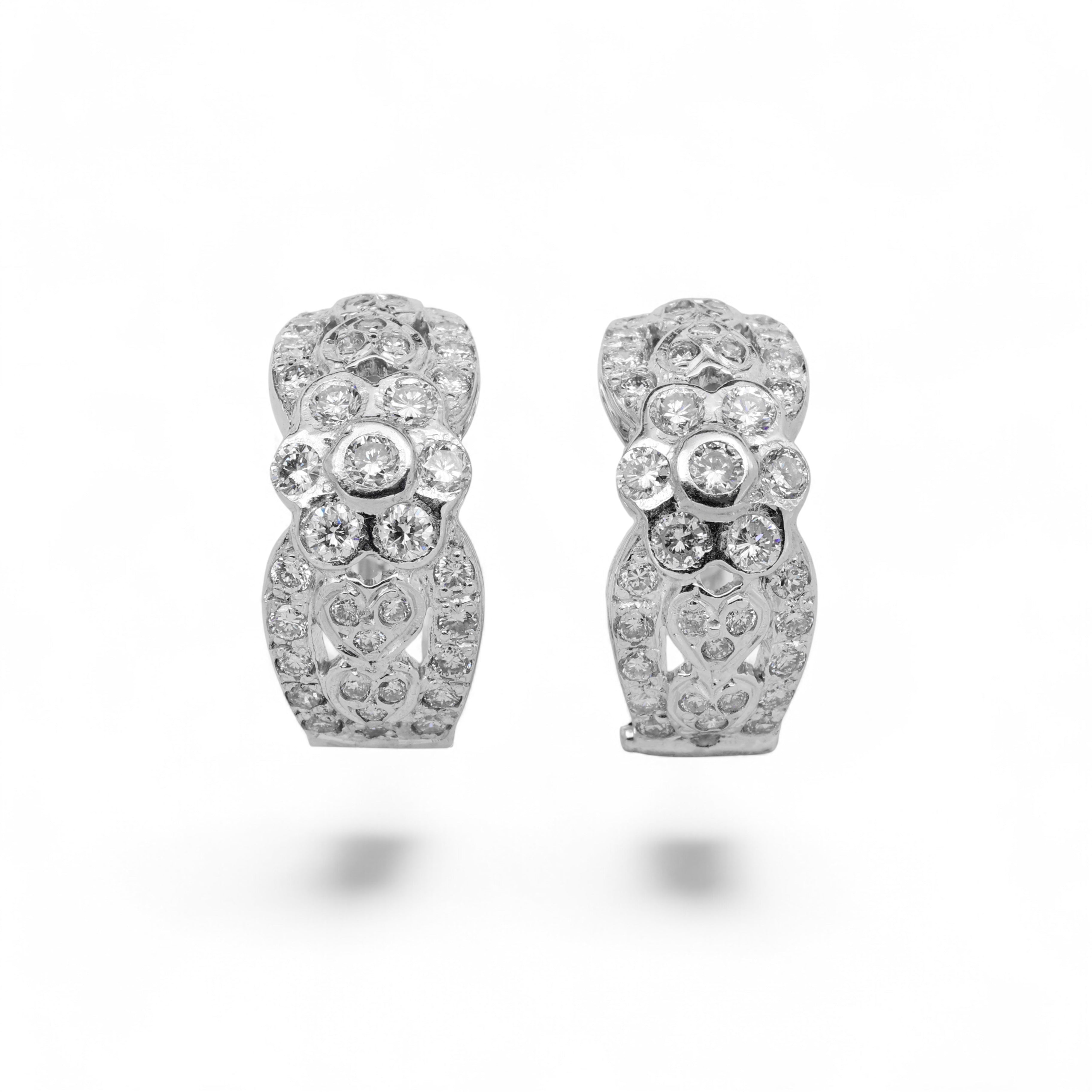 14K White Gold 1.20 Carat Diamond Link Hoops Earrings