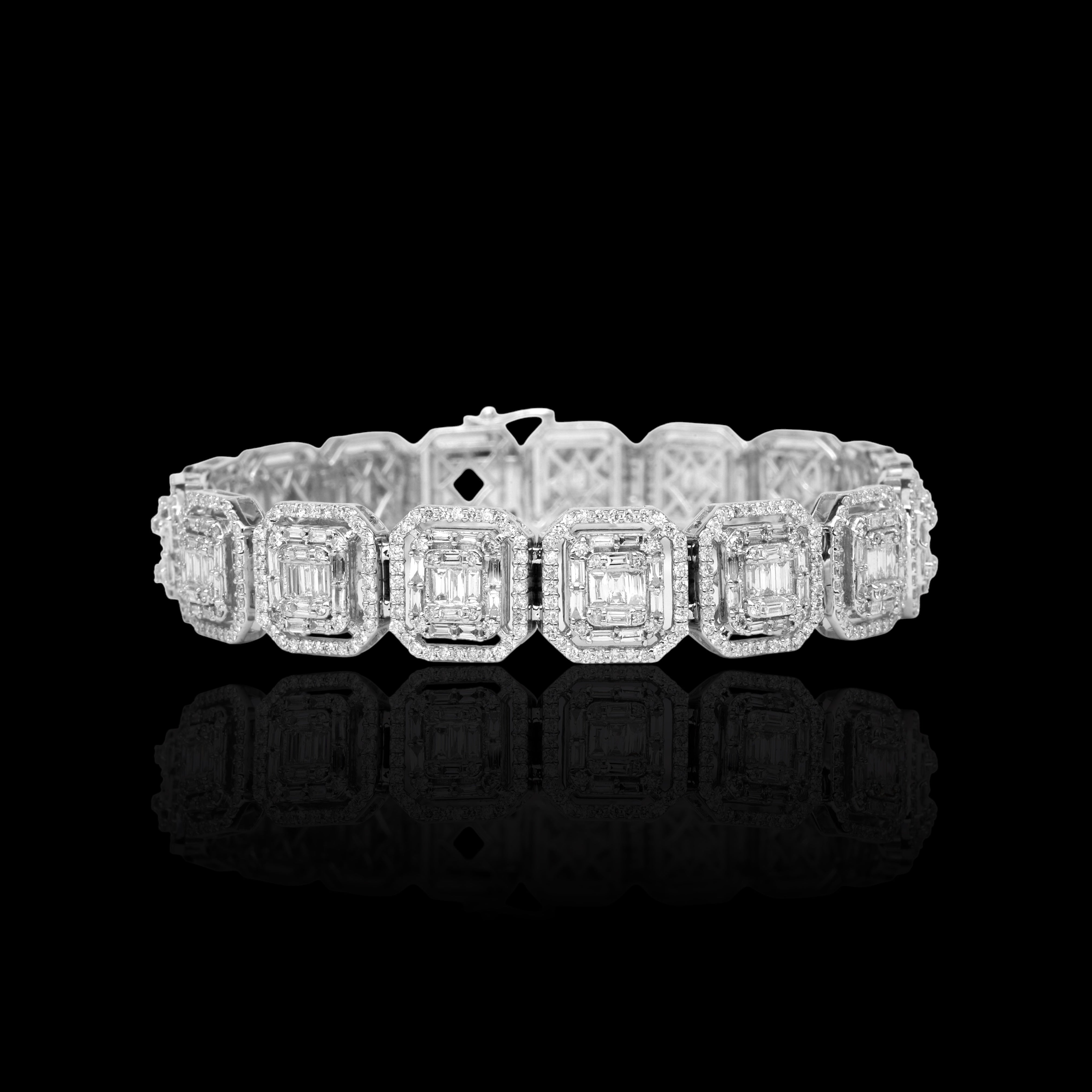 14K White Gold 9.42 Carat Square Link Baguette Diamond Bracelet