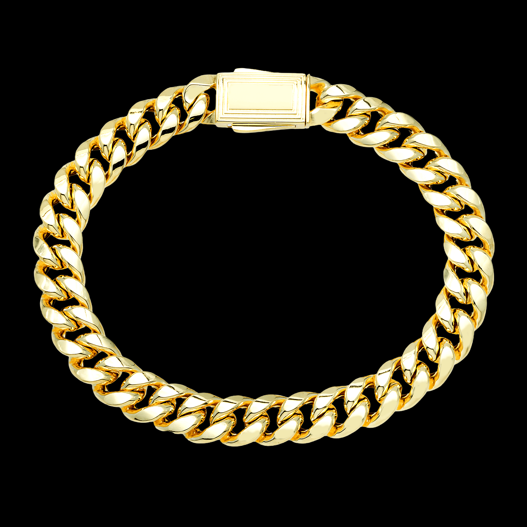 10K Yellow Gold Semi Hollow Miami Cuban Link Bracelet 10.00 mm