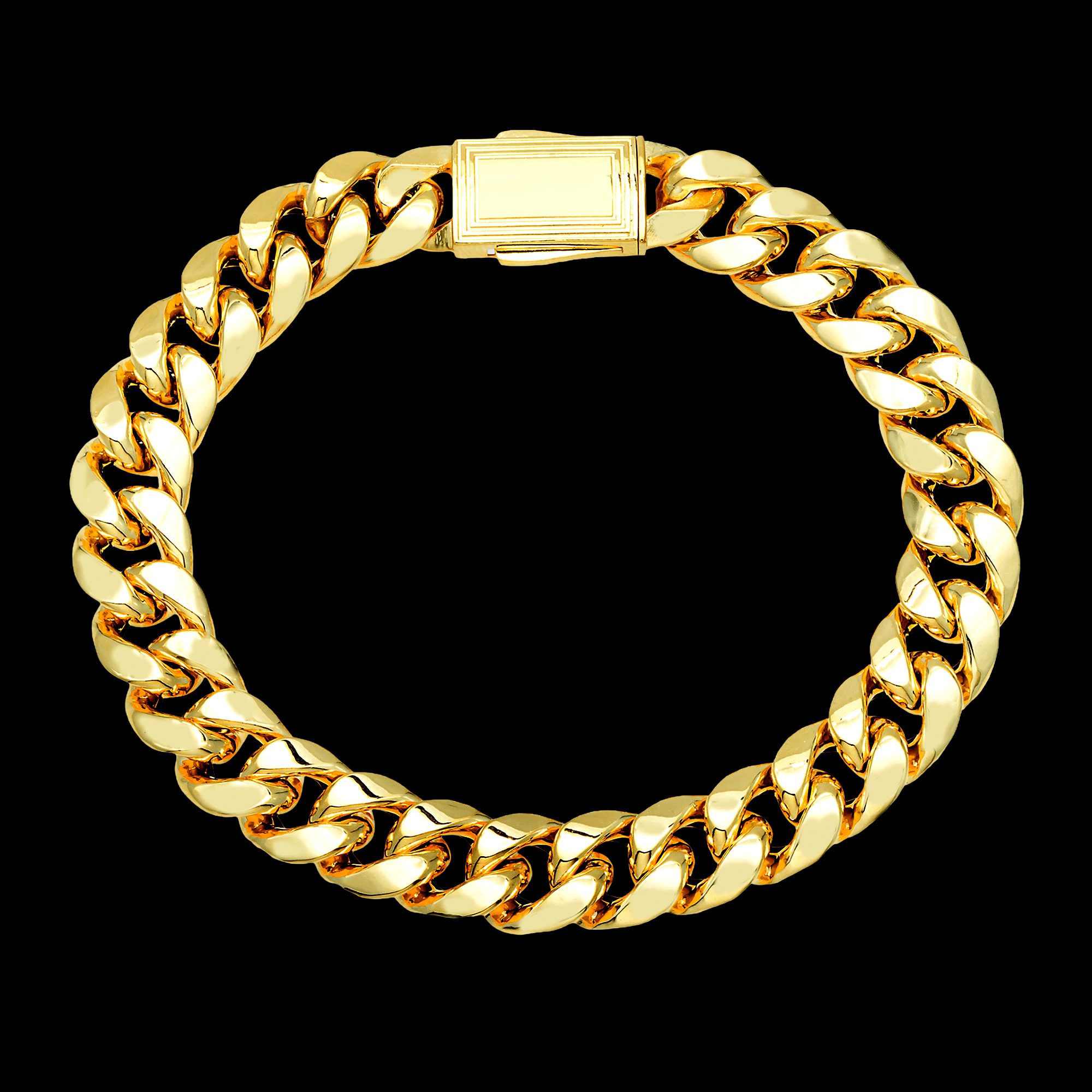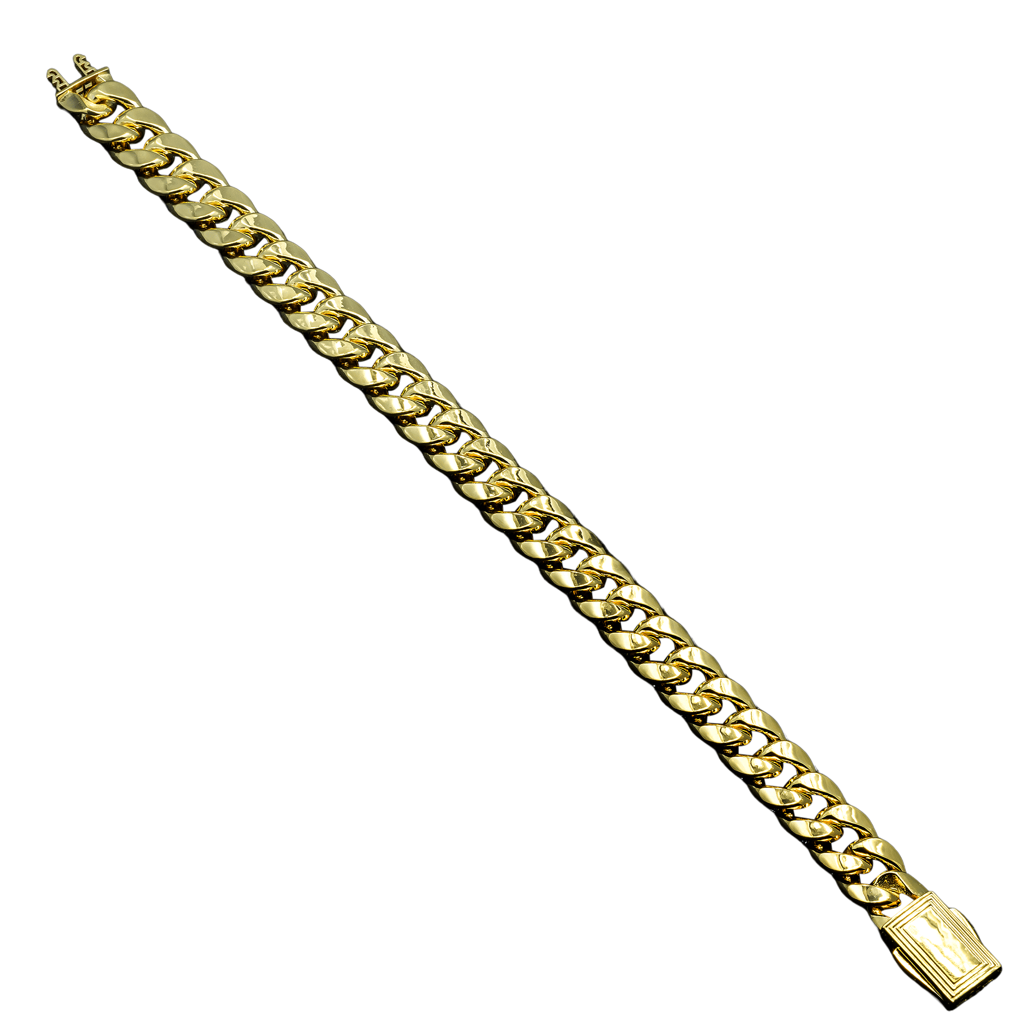 10K Yellow Gold Semi Hollow Miami Cuban Link Bracelet 12.00 mm