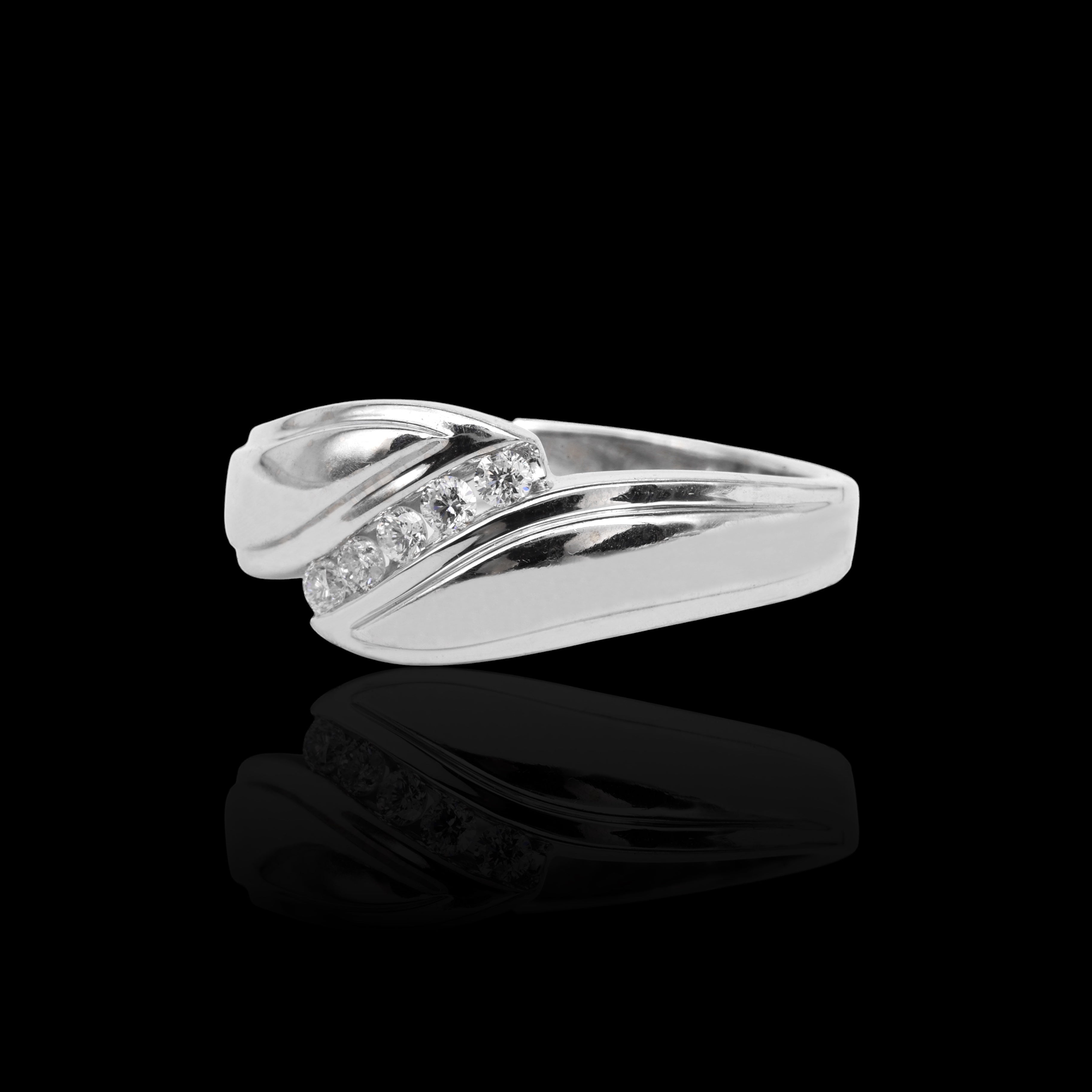 14K White Gold 0.30 Carat Slant Textured Wedding Diamond Ring