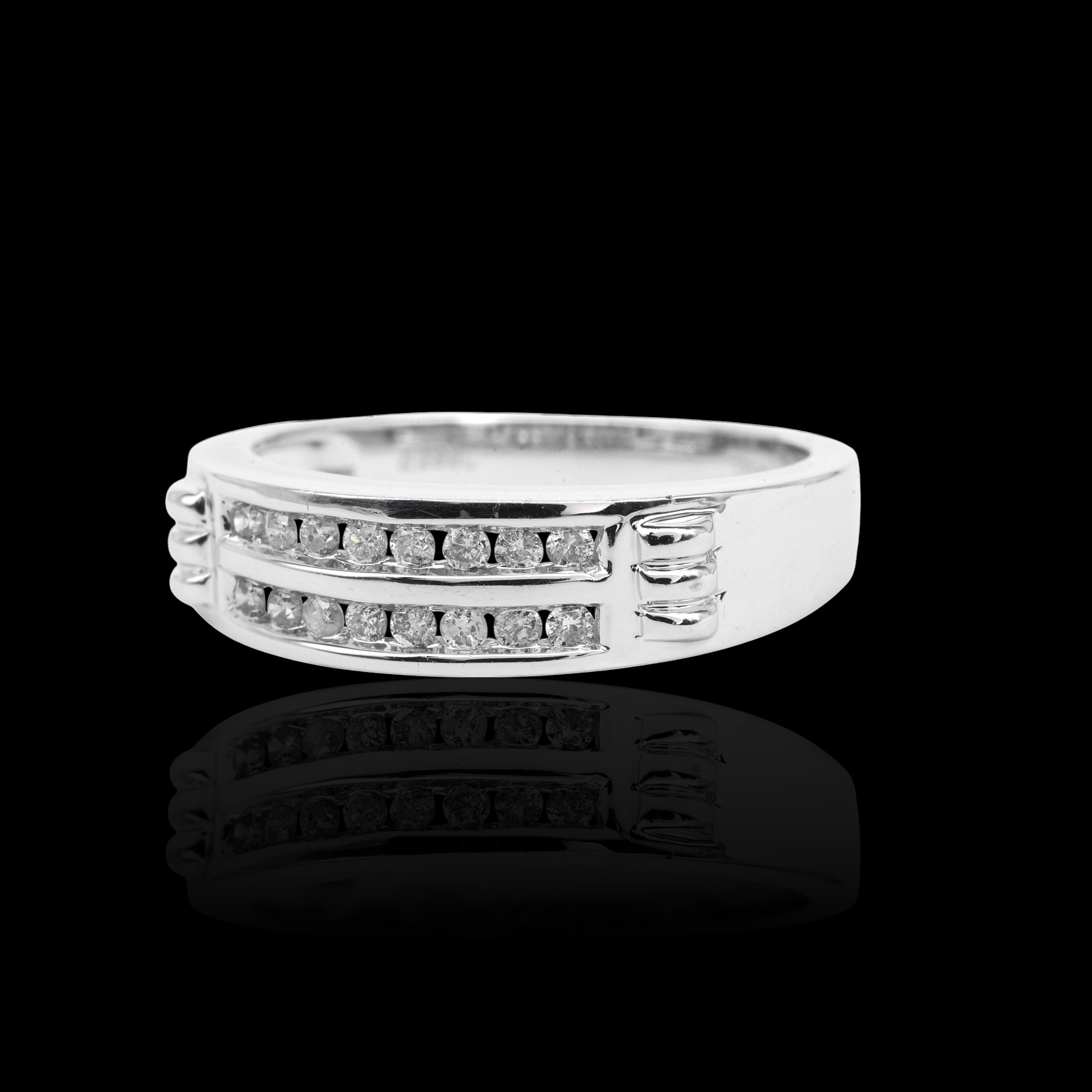 14K White Gold 0.65 Carat Two Row Wedding Diamond Ring