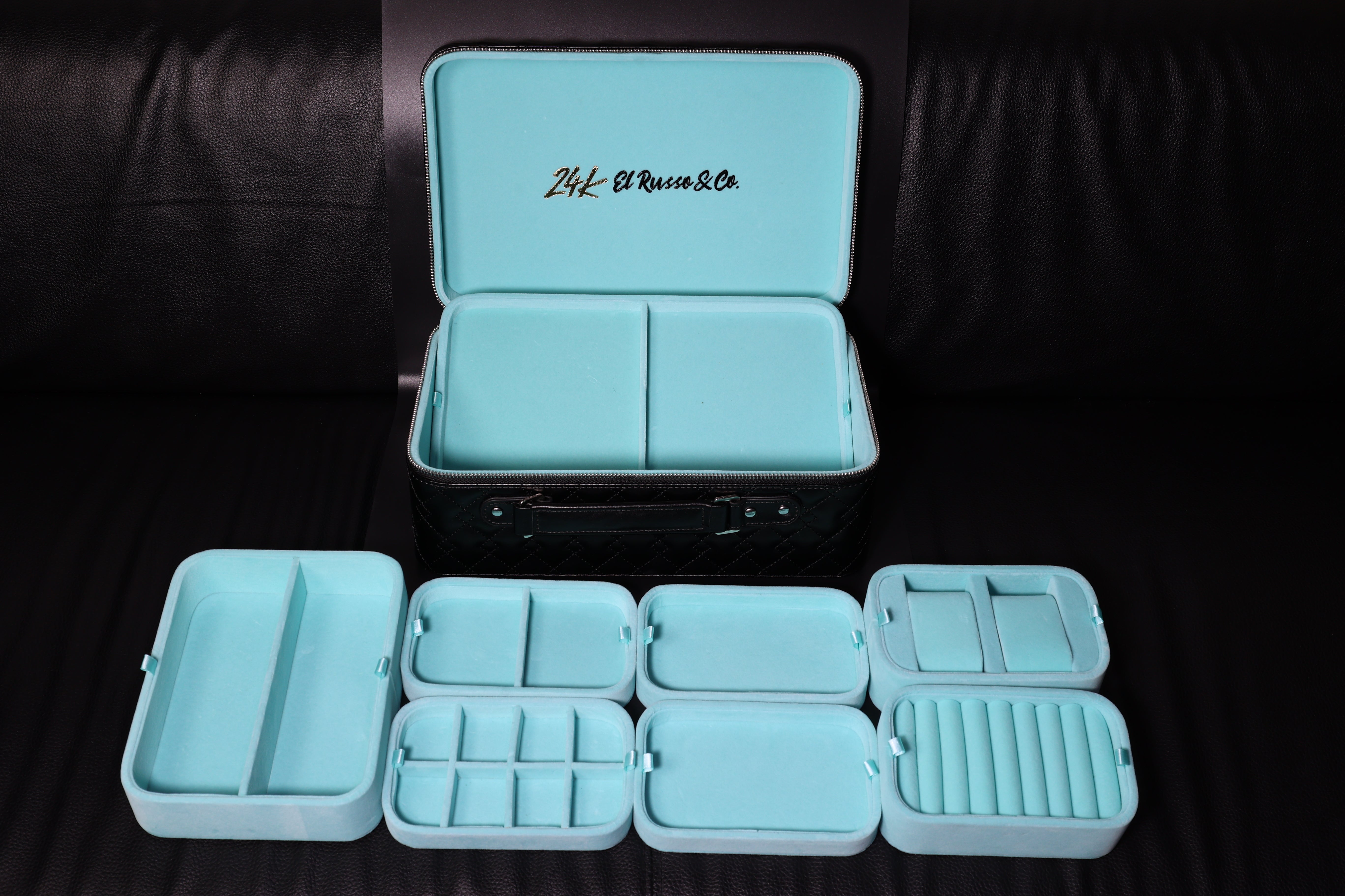 8 removable compartments for all your travel needs, flexible and interchangeable.