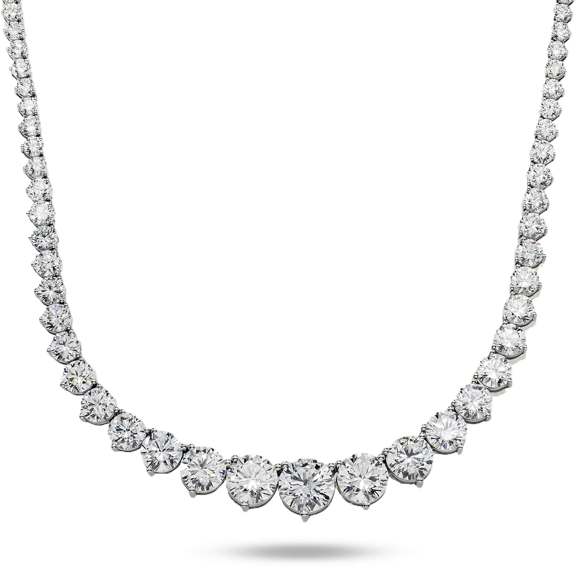 14K White Gold Lab-Stone Graduated Tennis Necklace | 21.86 Carat Round-Cut Diamond
