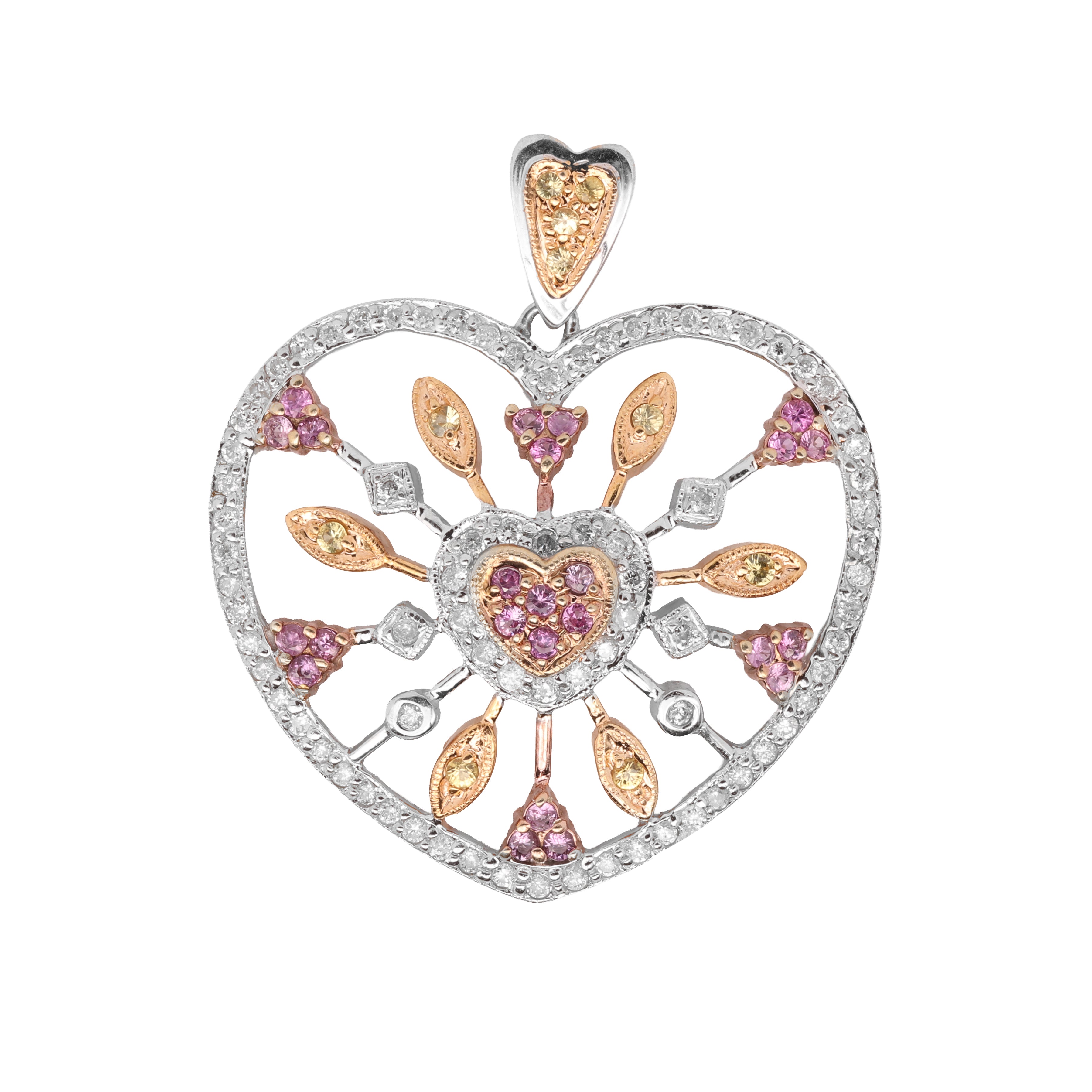 14K White Gold 1.50 Carat Openwork Heart Diamond Pendant