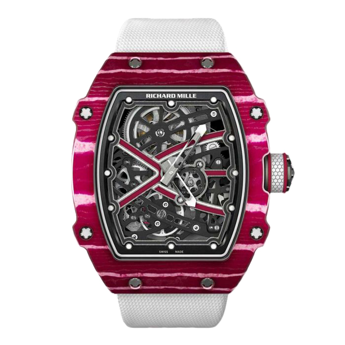 Thin, lightweight, colored, elegant and athletic, the RM 67-02 is the watch for any situation. Breaking with precedent, Richard Mille designed this model so that it can be adapted to various sporting disciplines. In collaboration with Qatari high jump specialist, Mutaz Essa Barshim, this take on the RM67-02 features a deep marron caase with a series of white accents, paying homage to Mutaz Essa Barshim Qatari roots. The RM67-02 features a Quartz TPT bezel and caseback with Carbon TPT caseband. Powered by the CRMA7, the RM67-02 features a power reserve of up to 50 hours and is water resistant up to 30 meters or 98 feet.
