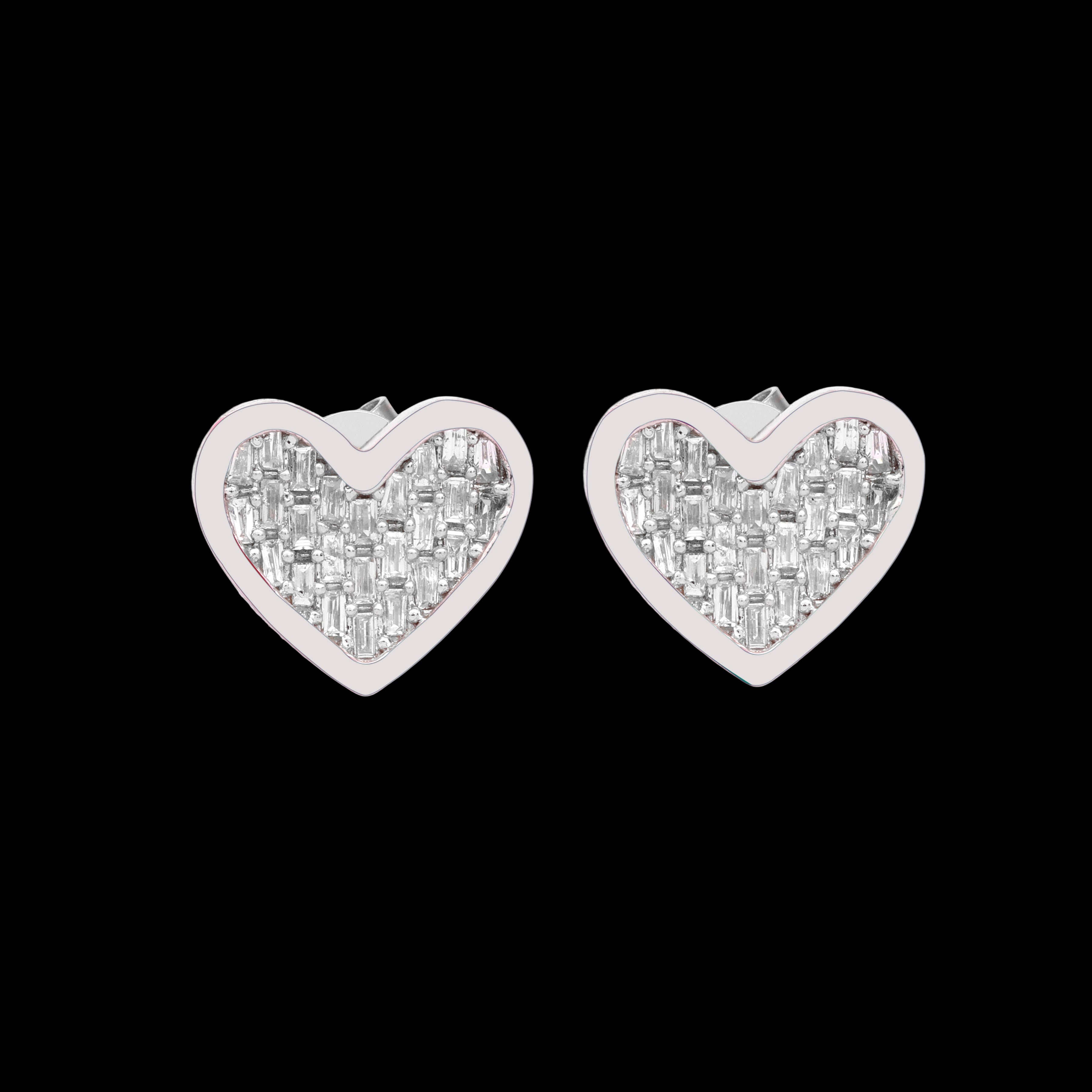 14K White Gold 2.00 Carat Heart Enamel Diamond Cluster Earrings