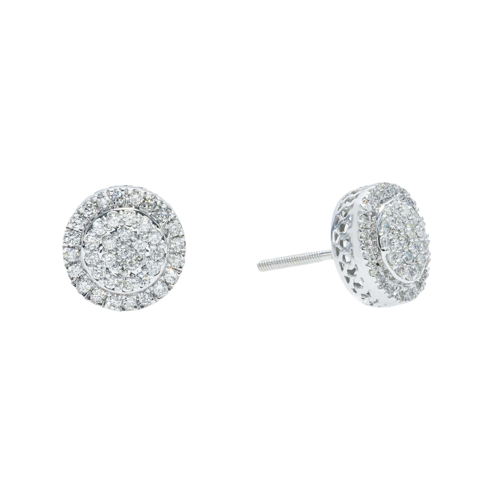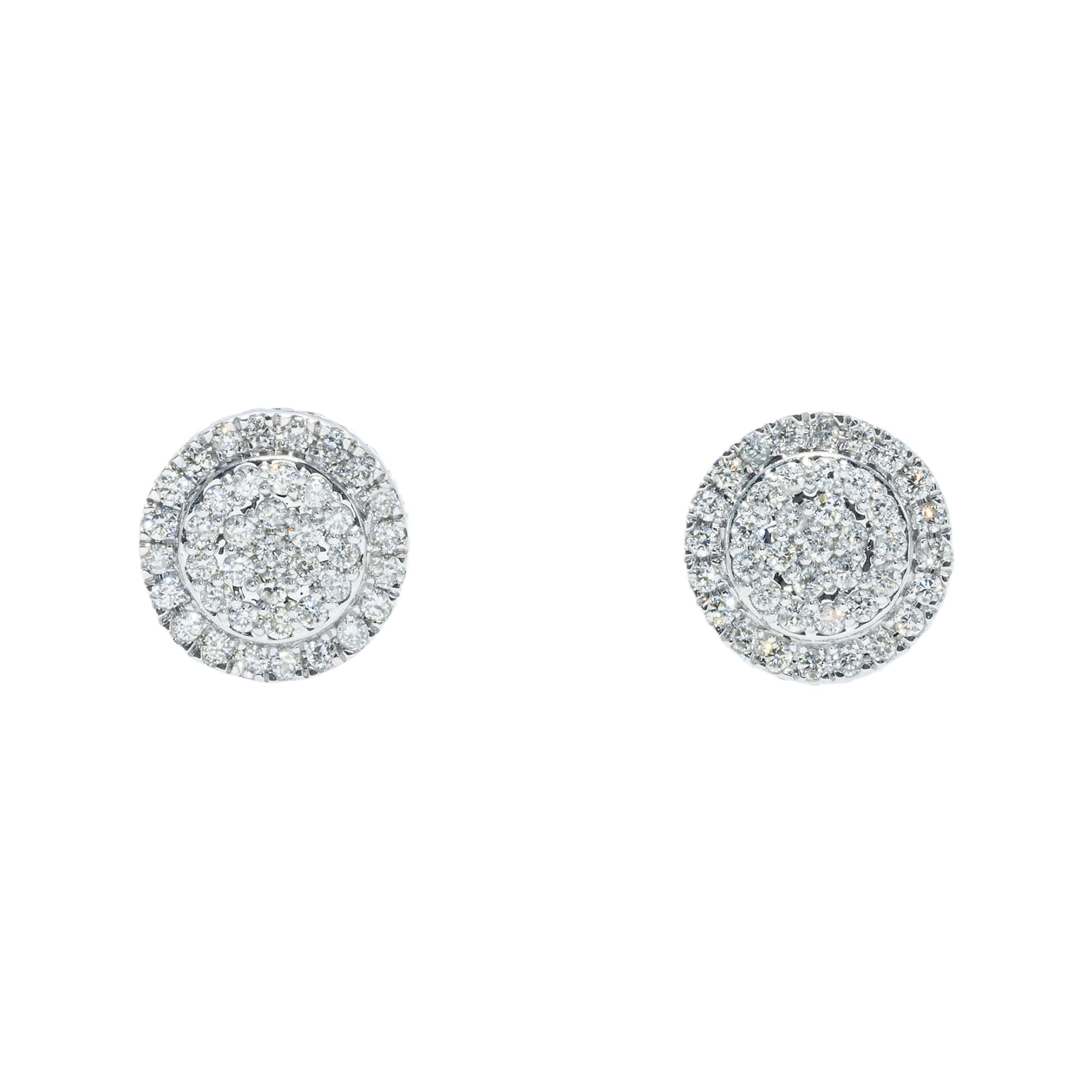 14K White Gold Round Halo Cluster Stud 0.58 ctw. Round Diamond Earrings