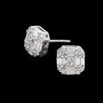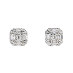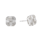 14K White Gold Square Stud 1.25 ctw. Baguette & Round Diamond Earrings