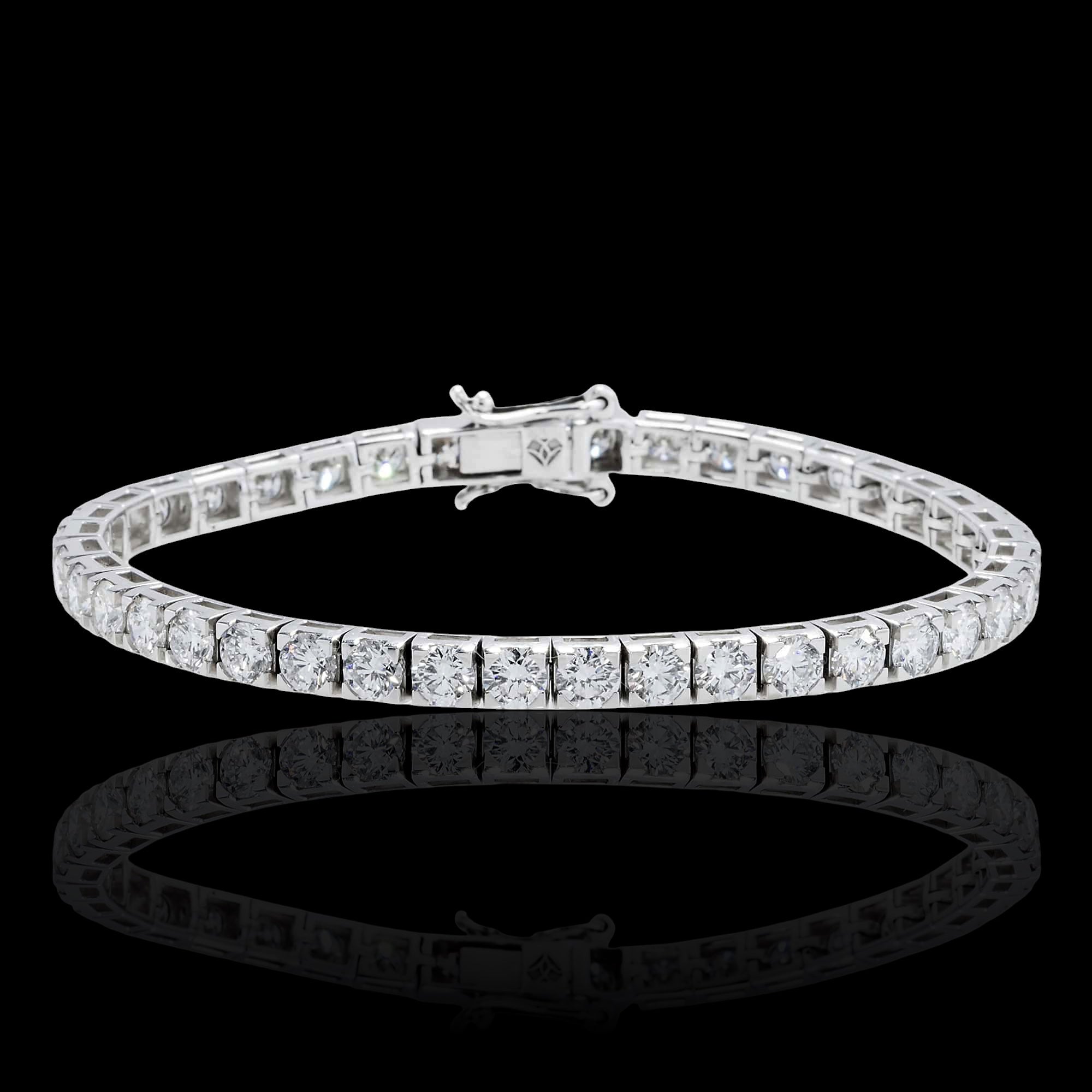 14K White Gold Lab-Stone Eternity Tennis Set 8.21 Carat Round-Cut Diamond Bracelet