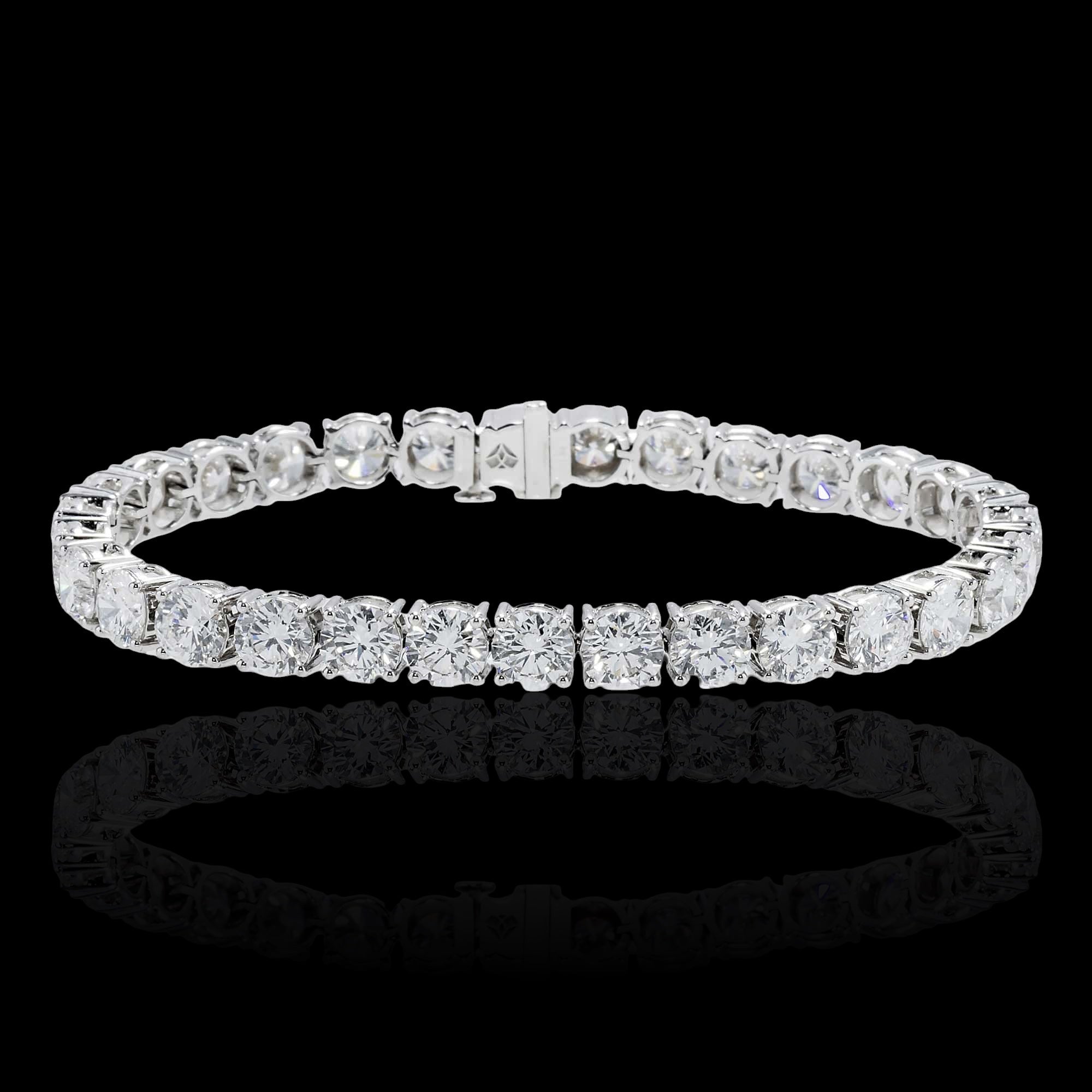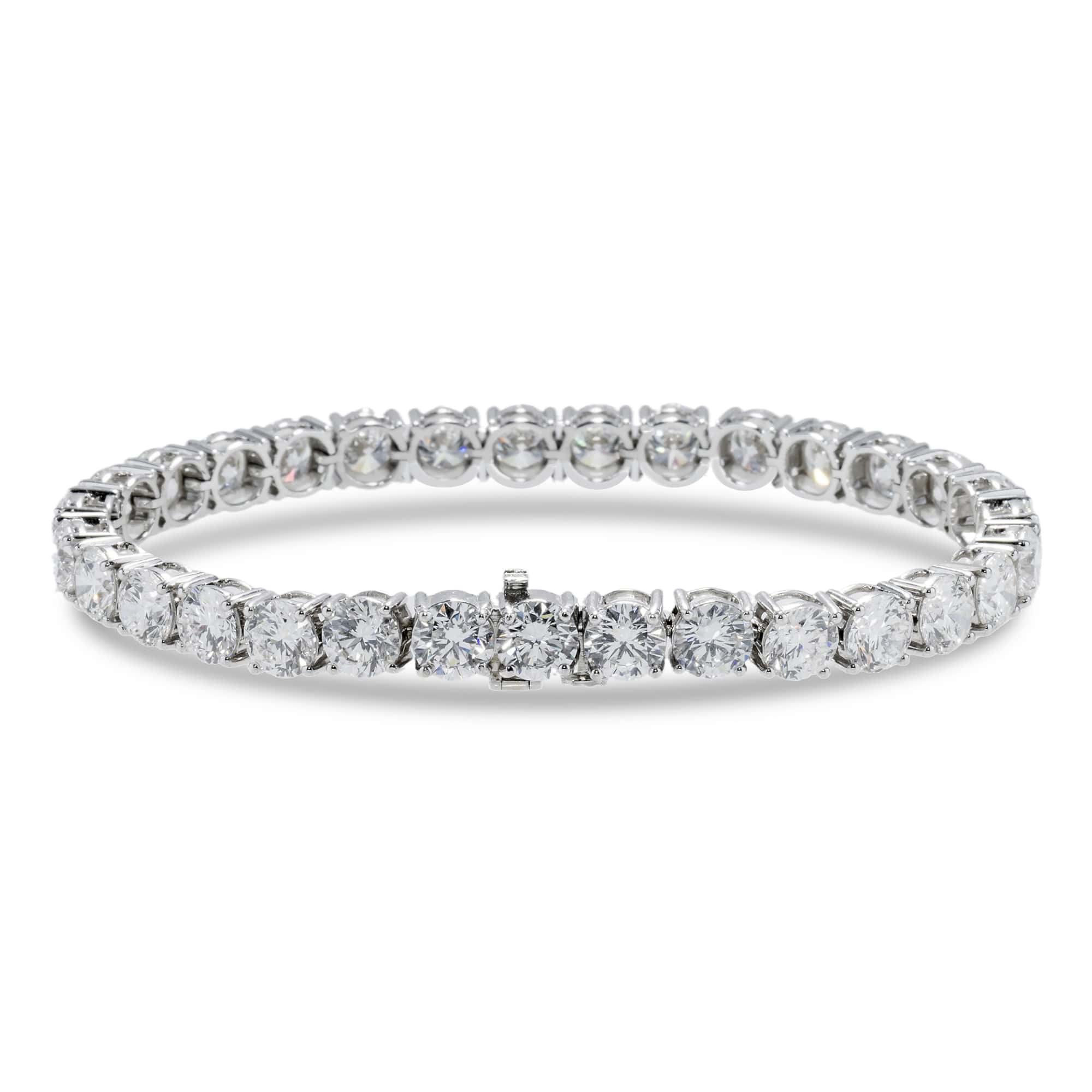 14K White Gold Lab-Stone Eternity Tennis Set 20.23 Carat Round-Cut Diamond Bracelet
