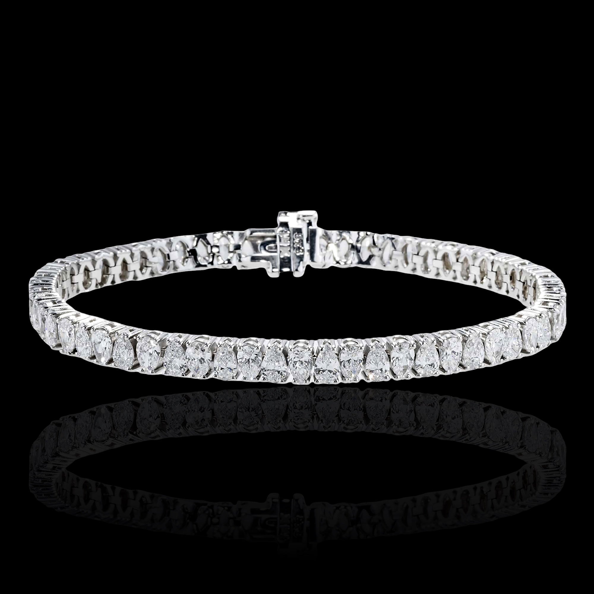 14K White Gold Lab-Stone Teardrop Eternity Tennis Set 9.60 Carat Pear-Cut Diamond Bracelet