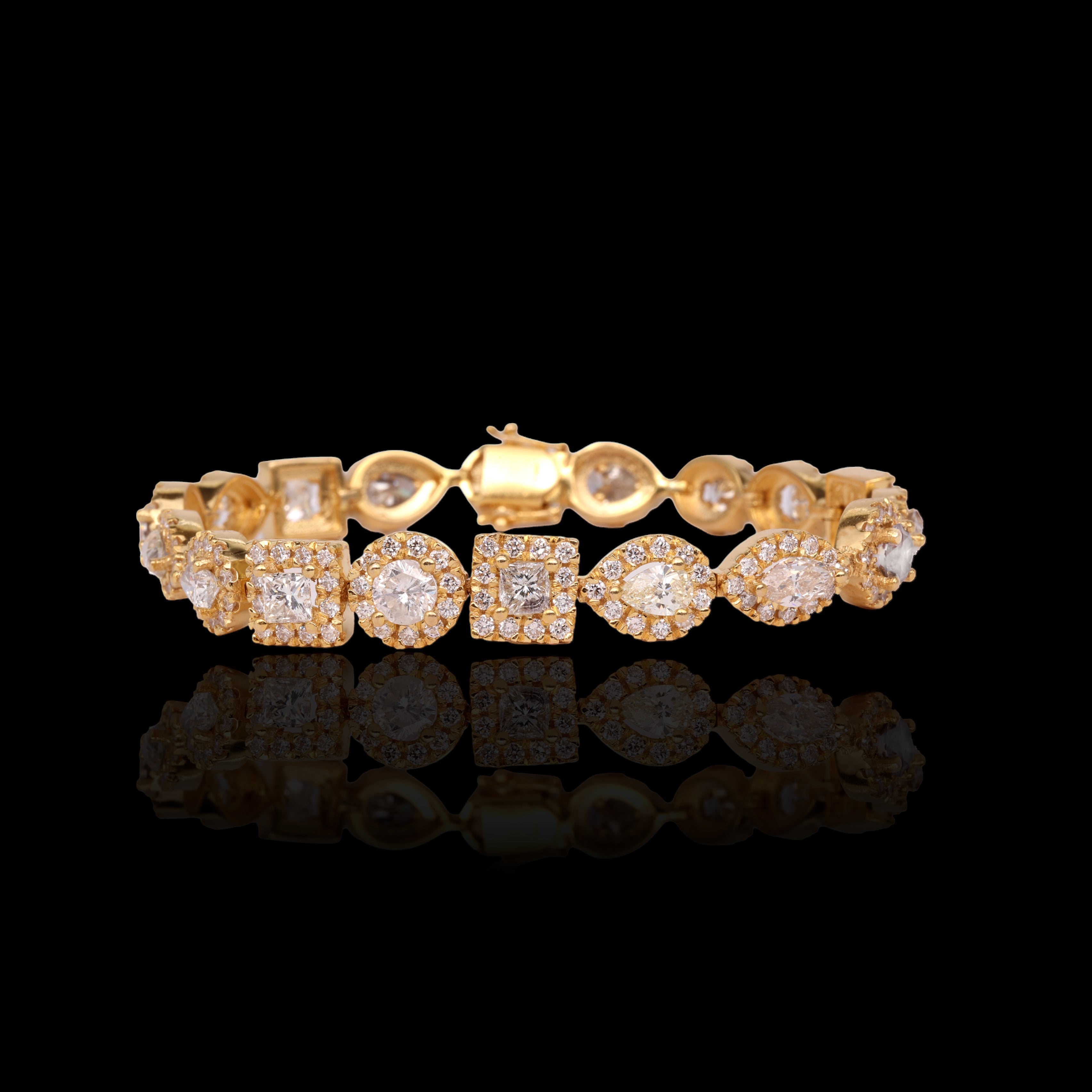 14K Yellow Gold 22.00 Carat Multi Shape Fancy Diamond Bracelet