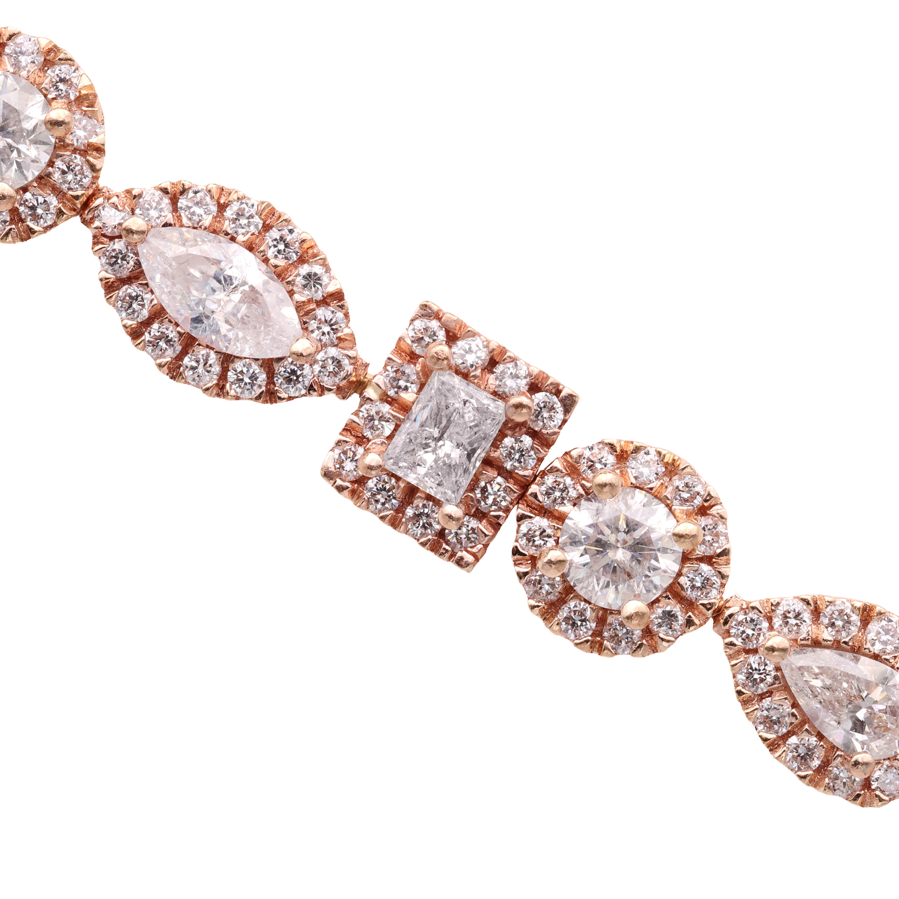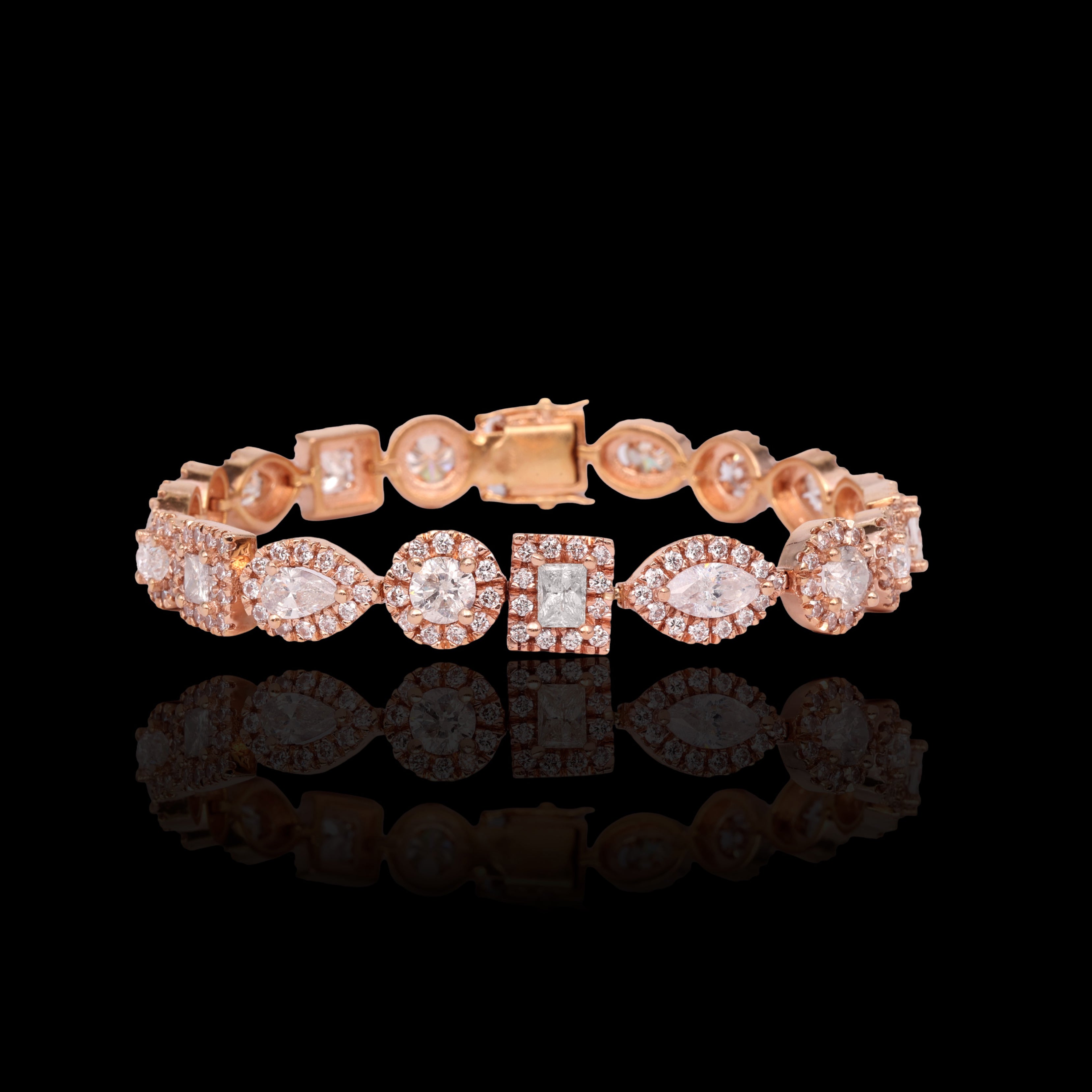 14K Rose Gold 22.00 Carat Multi Shape Fancy Diamond Bracelet