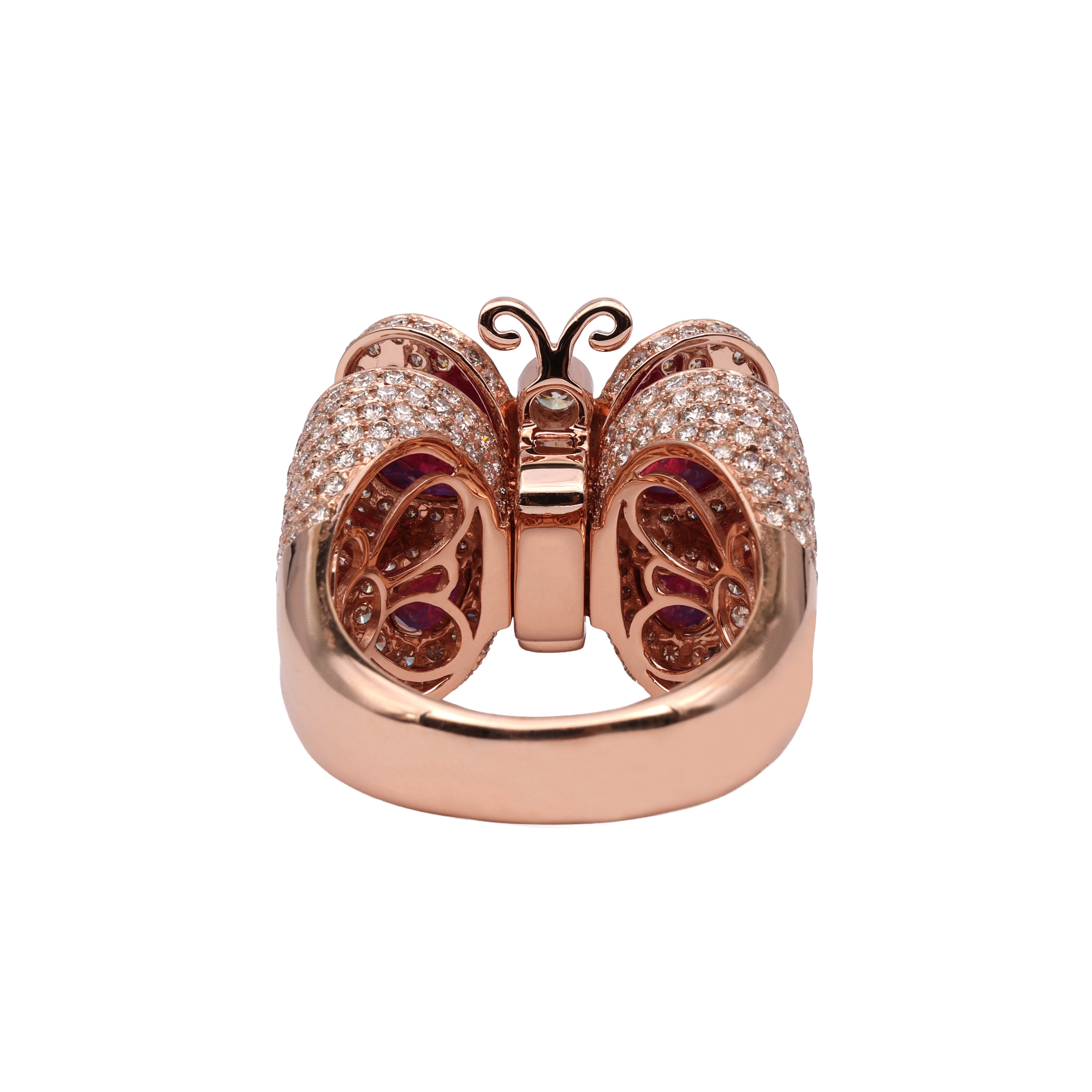 14K Rose Gold Butterfly 4.93 Carat Multi Color Diamond Ring