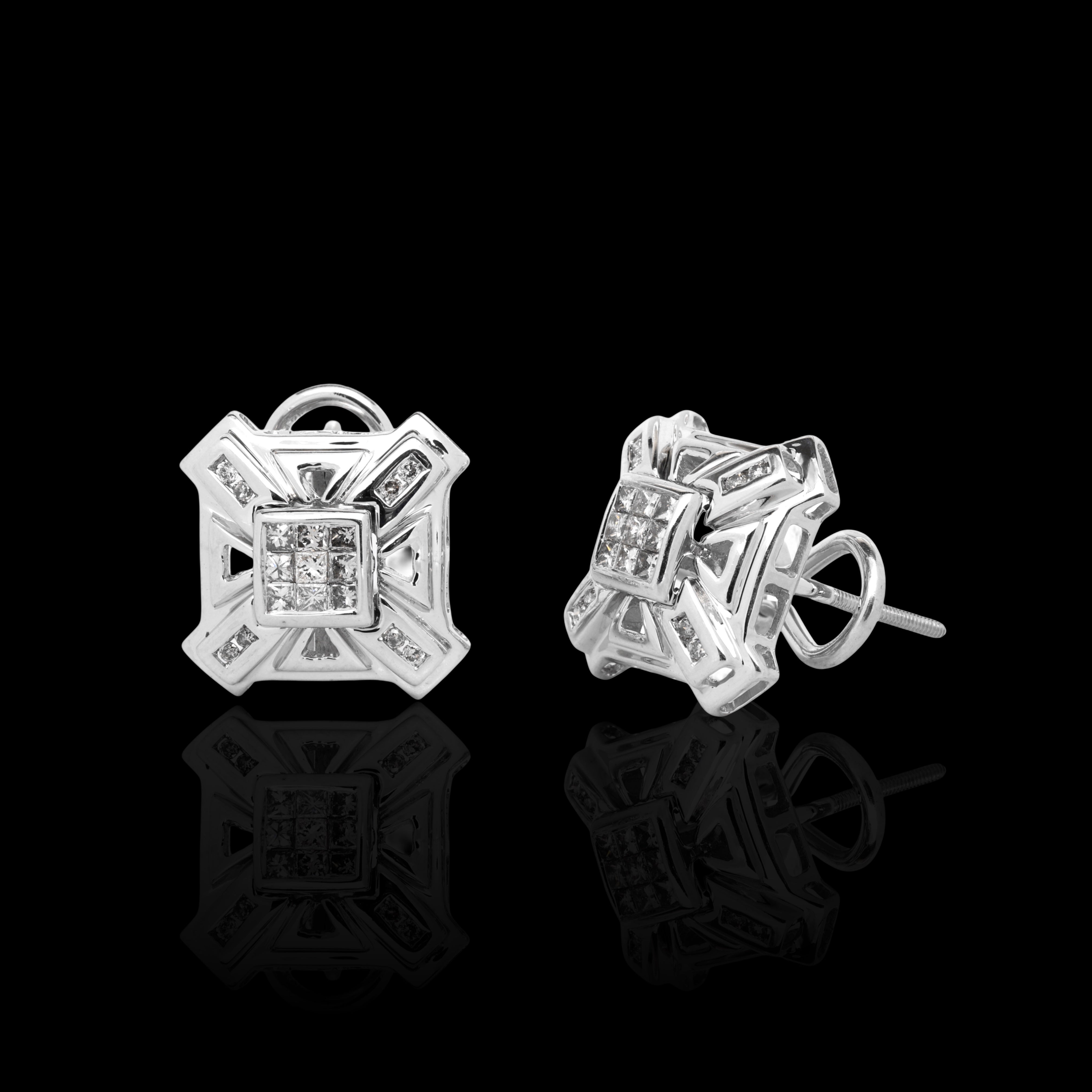 14K White Gold 0.50 Carat Square Stud Diamond Earrings